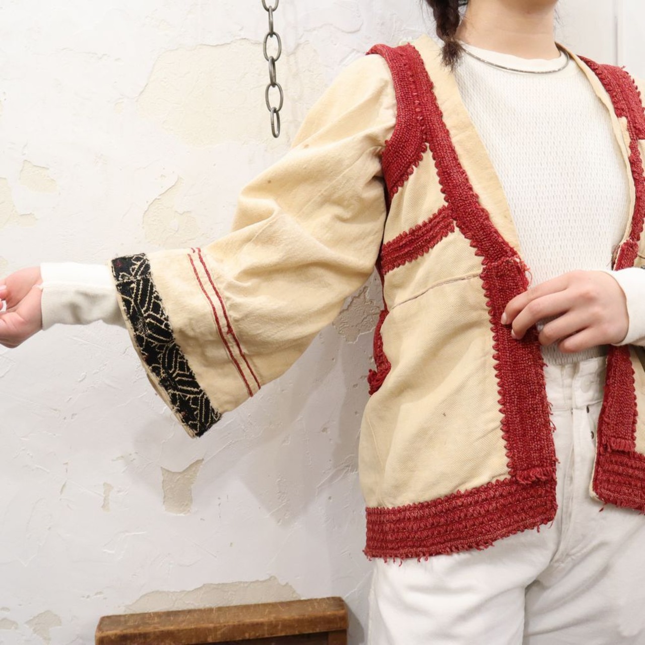 刺繍部分にホツレや毛羽立ち、キズがございますが、古着の味わいとして着て頂けるかと思われます。