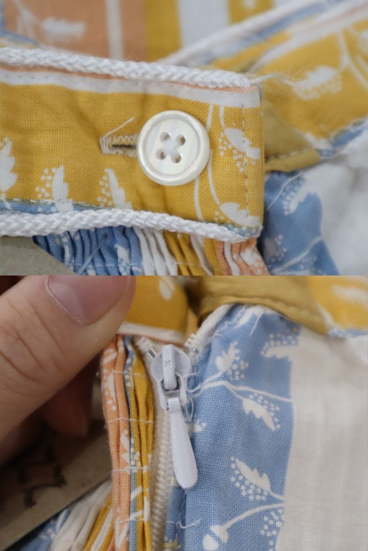 またウエスト部分の糸の飛び出しや、一部シャーリングを解いてウエストを広げた跡がございますが、着用に問題はございません。