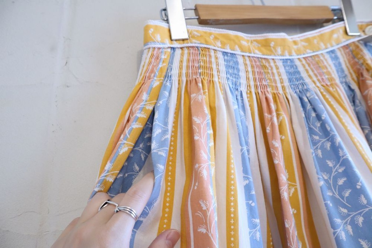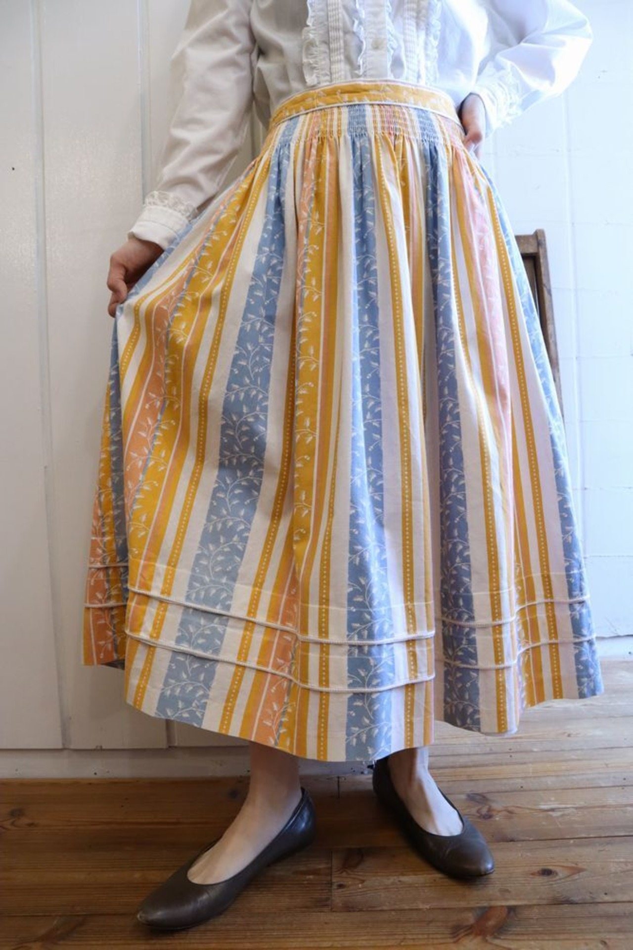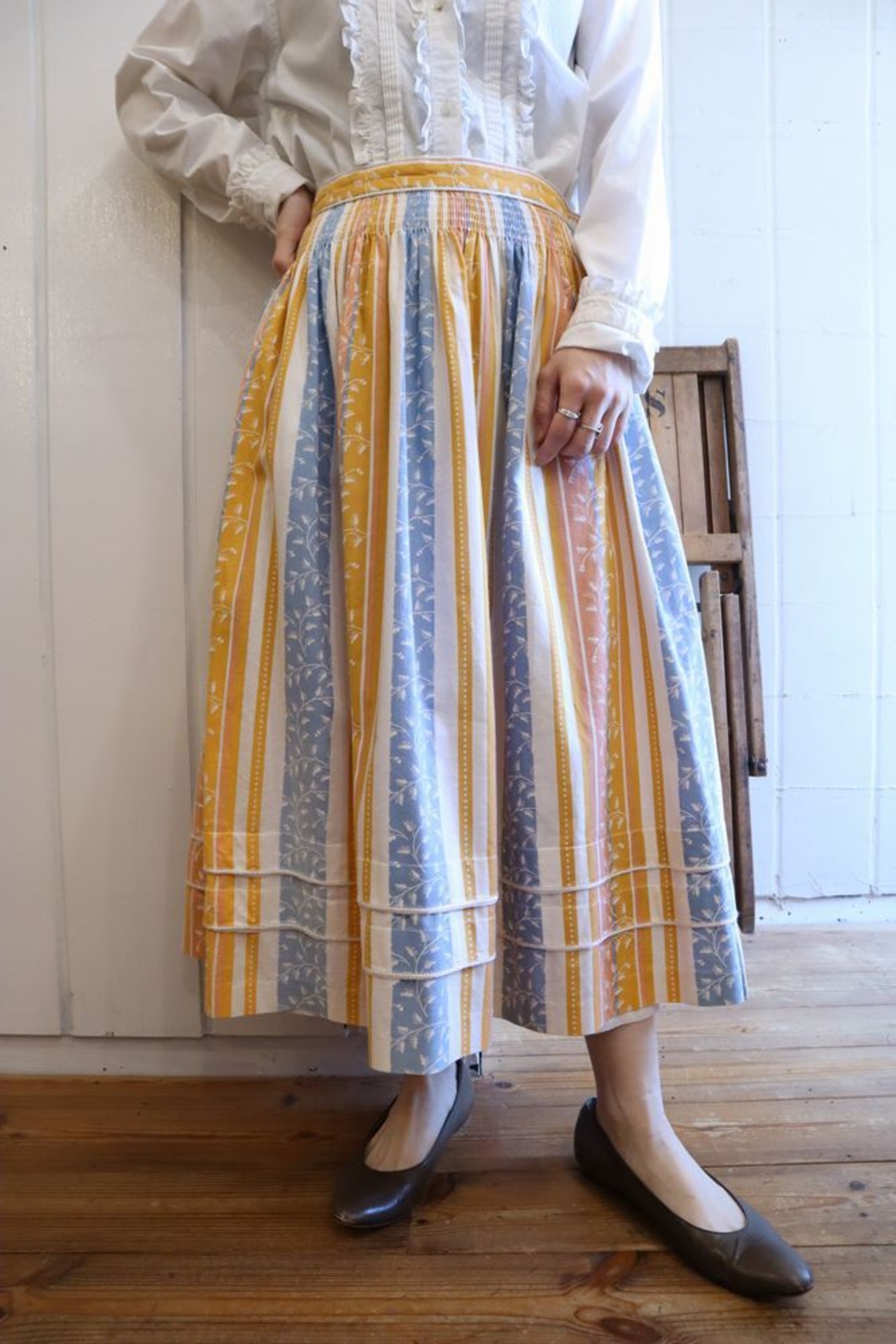 yellow × blue × white stripe & leaf pattern tirol skirt [l-140]