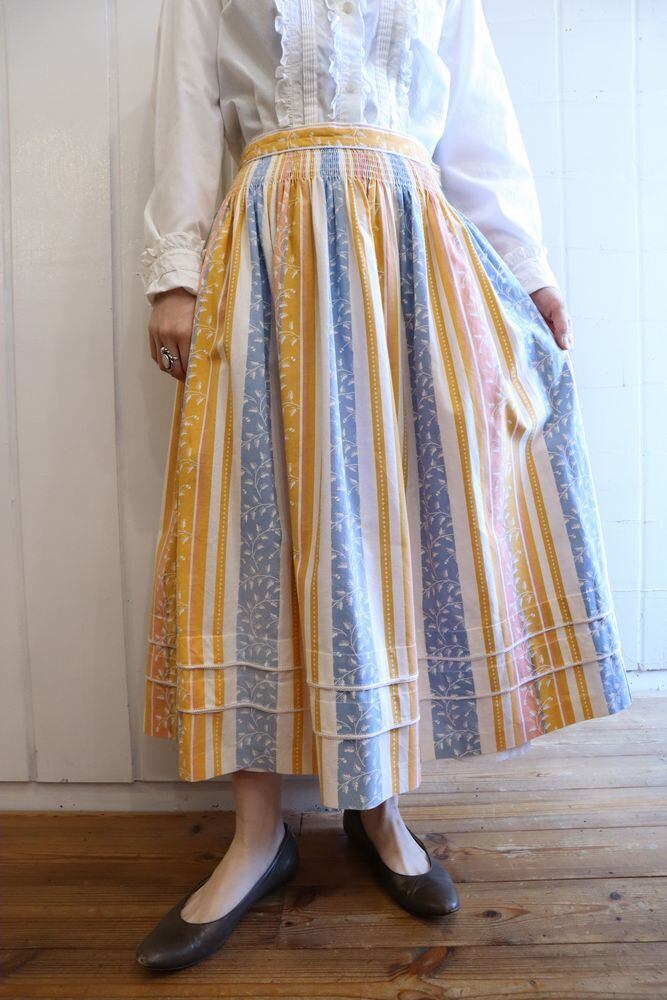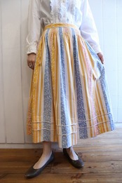 yellow × blue × white stripe & leaf pattern tyrol skirt [l-140]