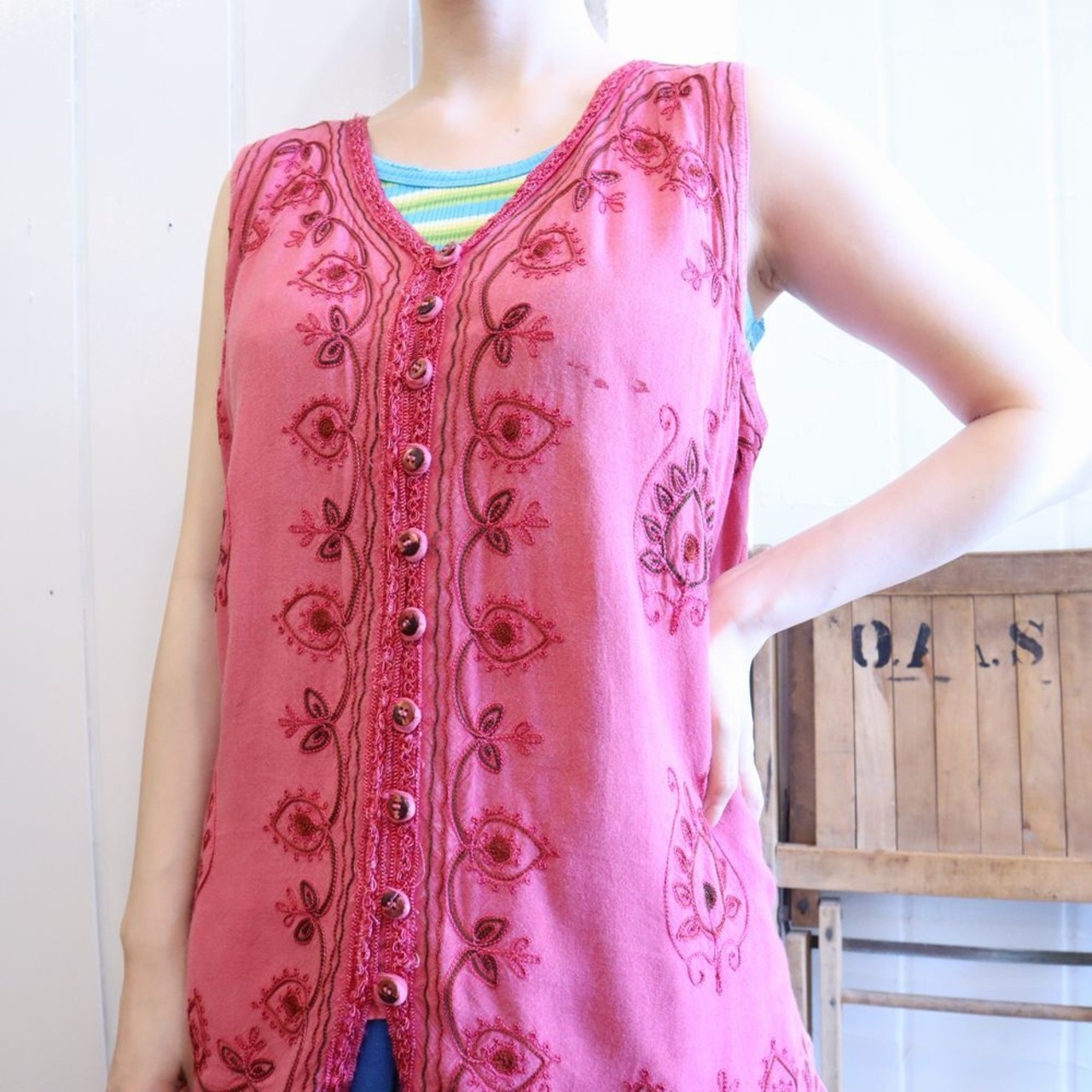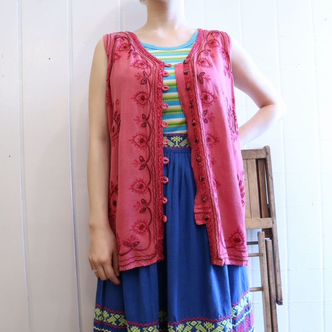 インドレーヨンアイテムらしい刺繍が素敵なベストです。