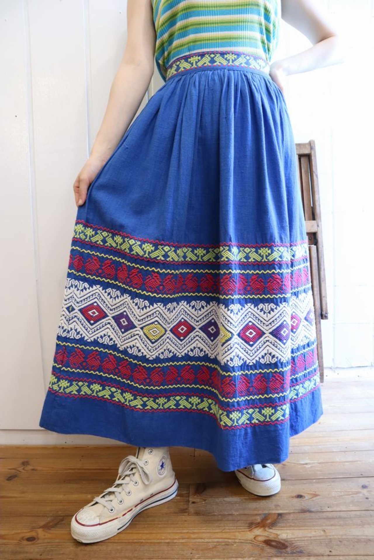 鮮やかなお色味が素敵なグアテマラ刺繍スカートです。