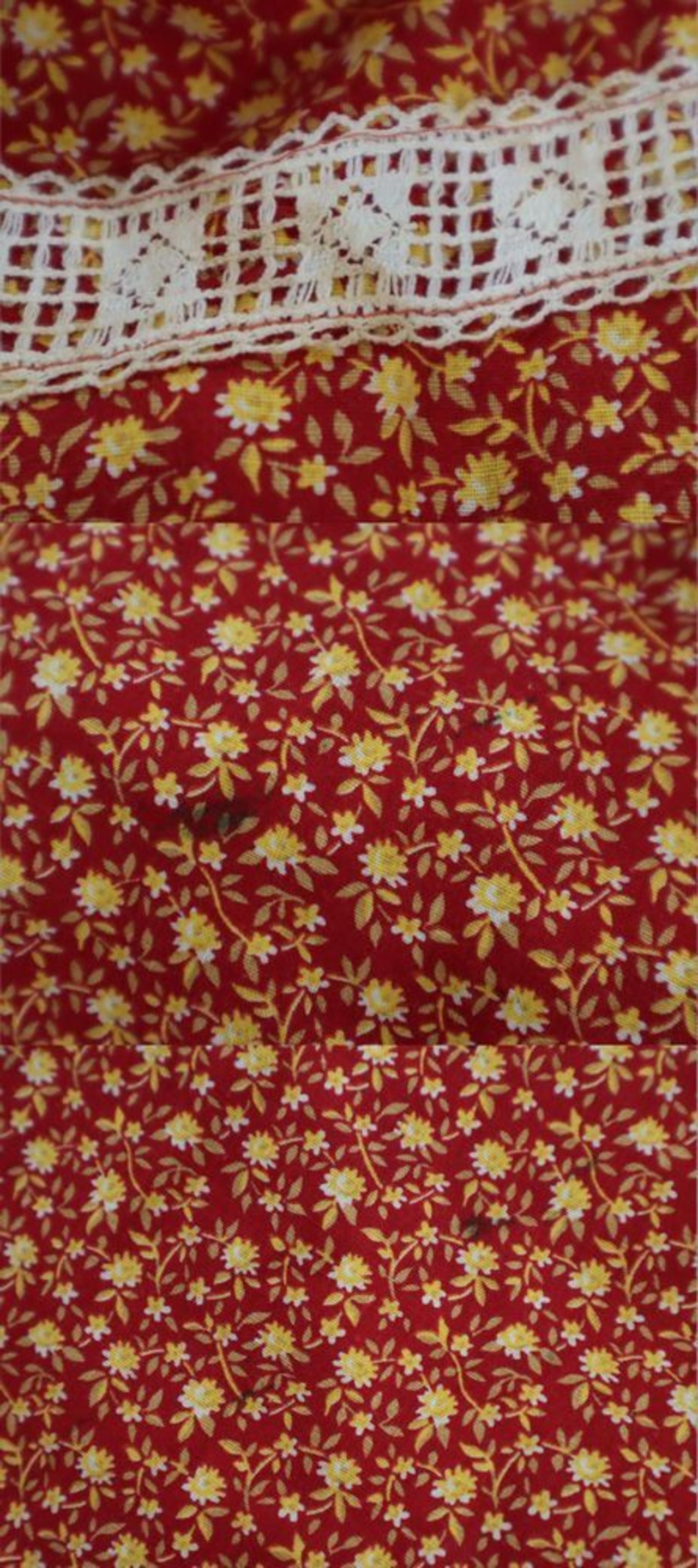 レースにシミ・裾辺りに汚れが見受けられますが、あまり気にならないかと思われます。