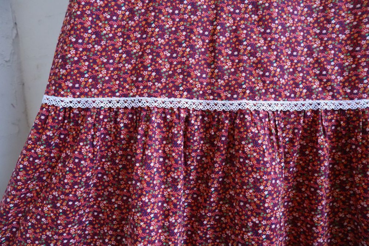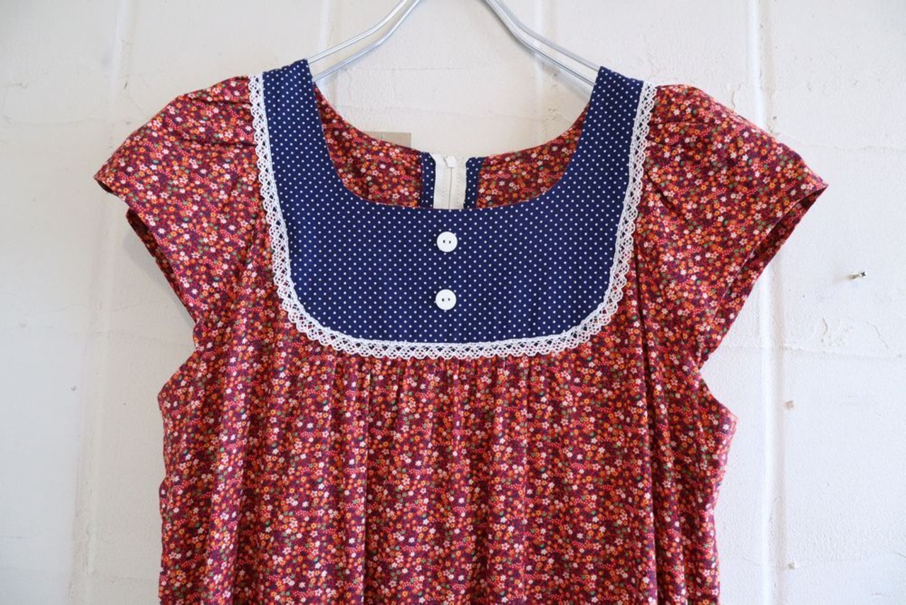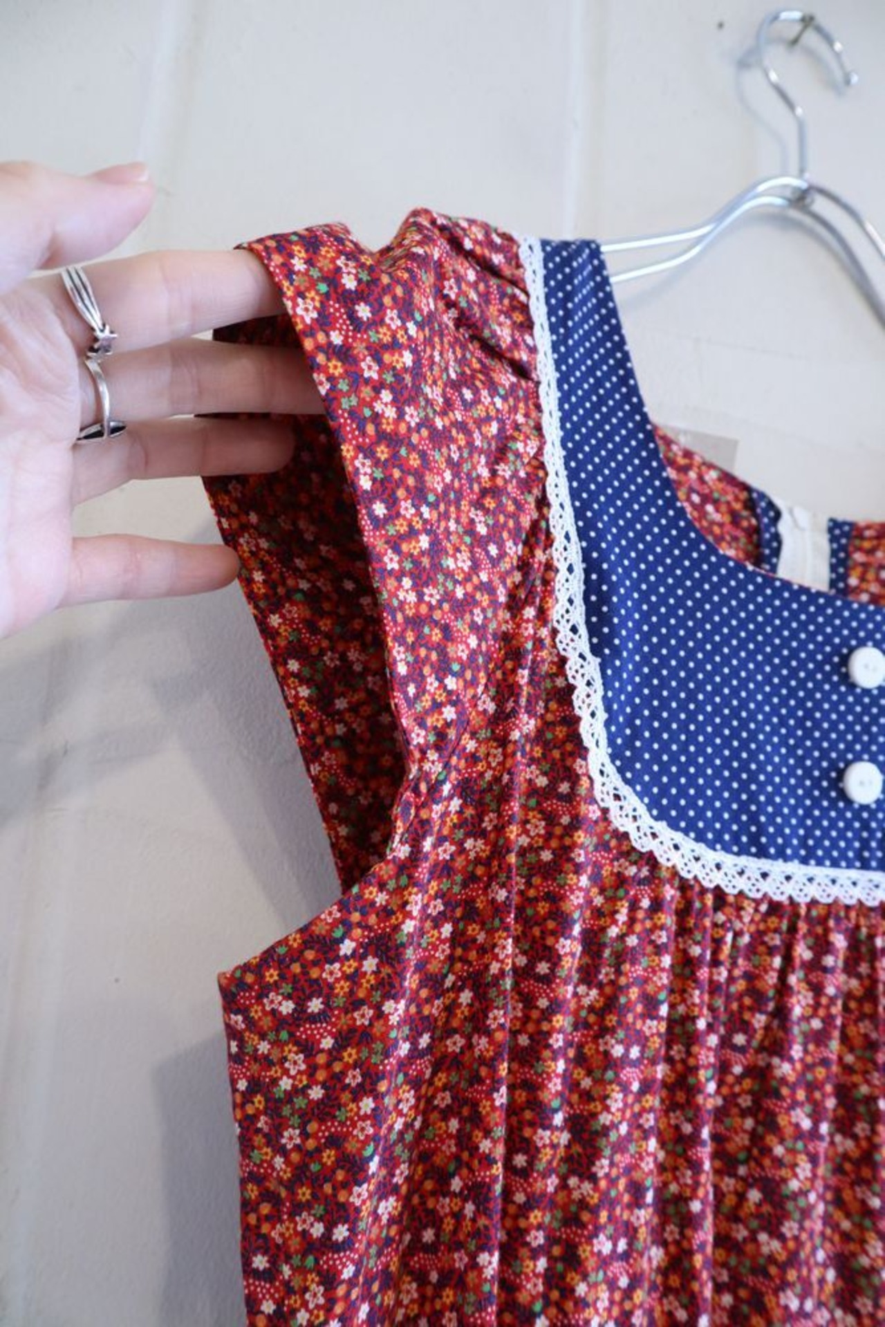 70s ”Sears” red×navy×white floral long dress [l-164]