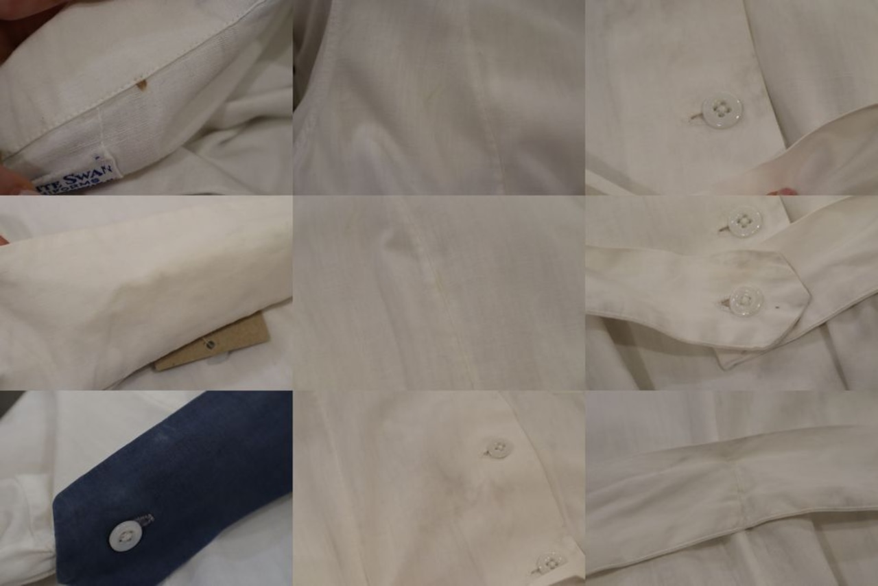 全体的に汚れやシミ汚れが見受けられますが、古着の味わいとして着て頂けるかと思われます。