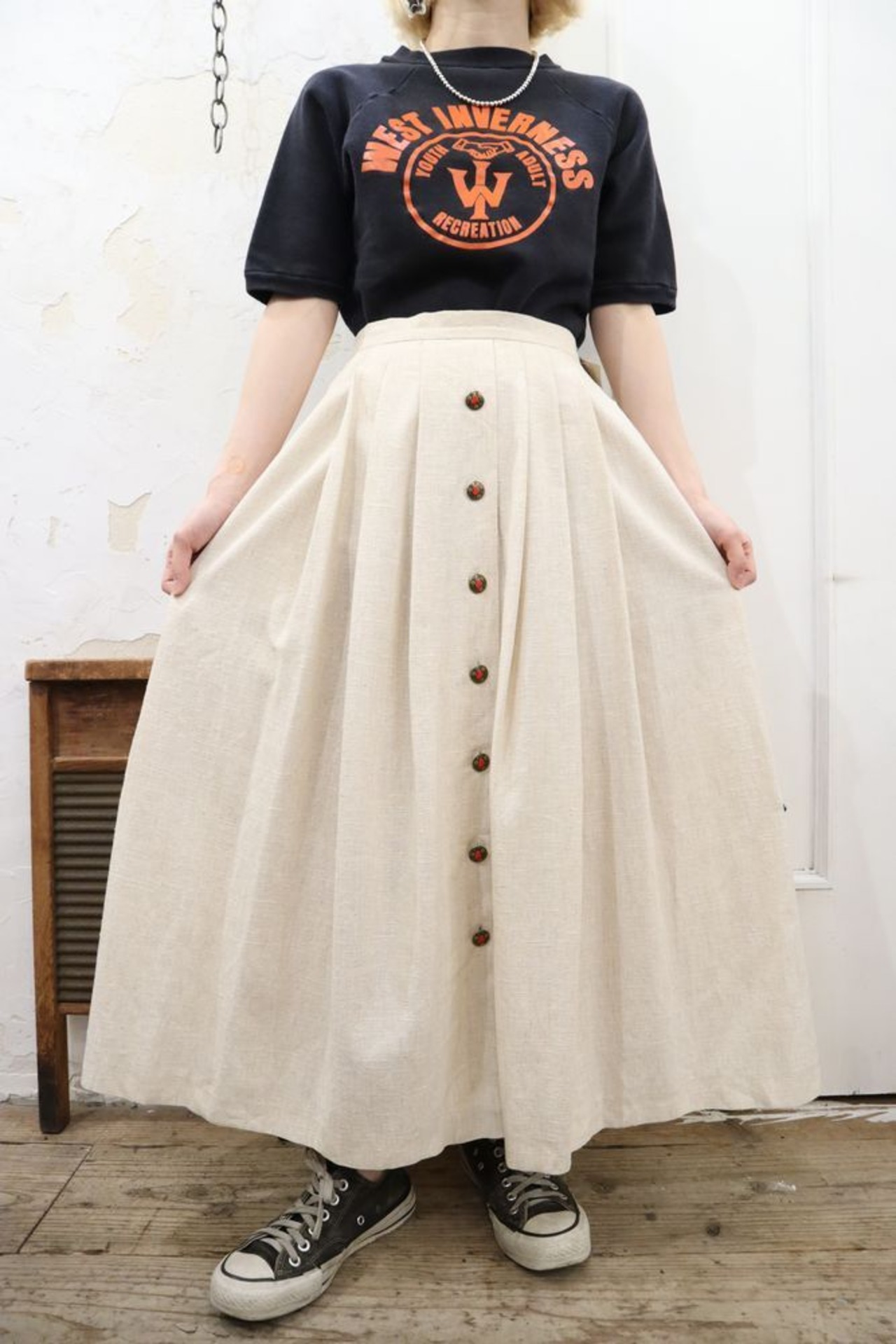 生成りのカラーが素敵なチロルスカートです、