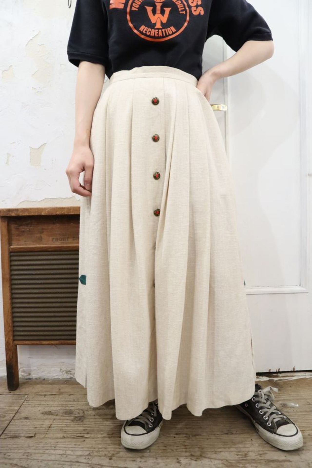 white×beige front button tyrol skirt [l-186]