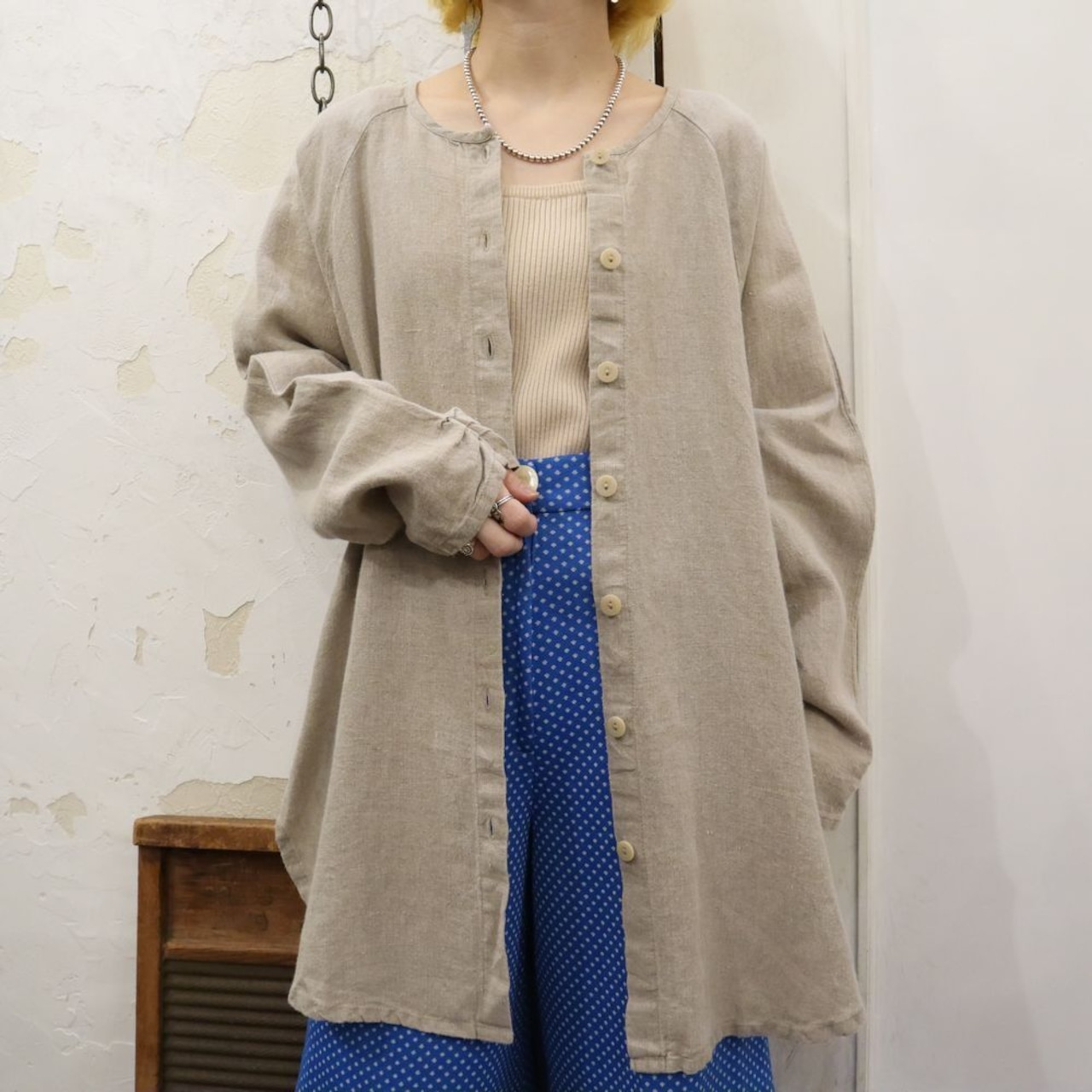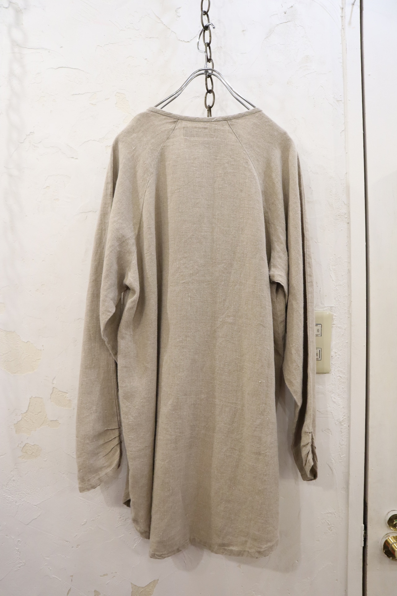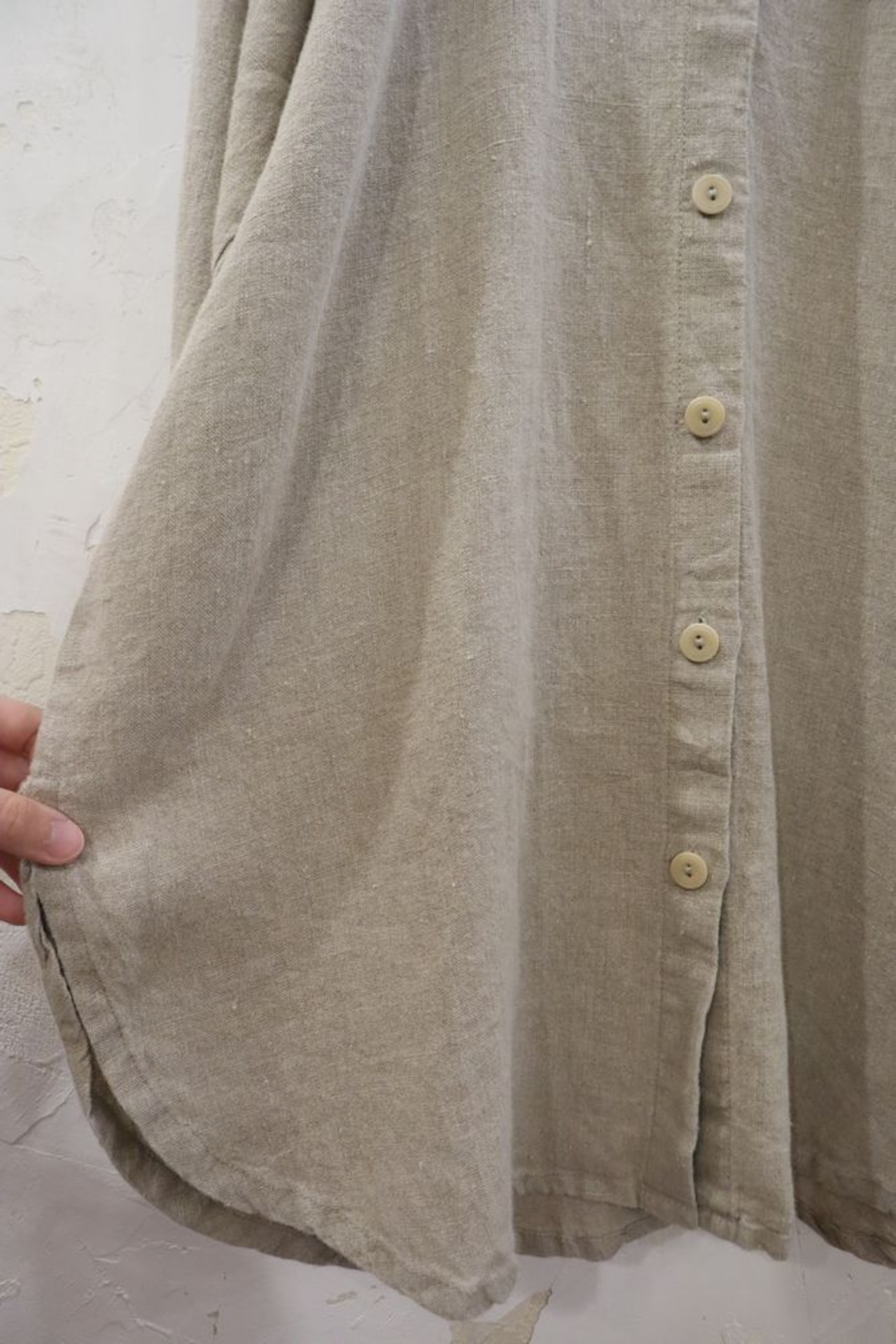 ”FLAX” beige plain long sleeve linen shirt [k-206]