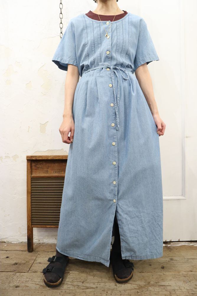 "L.L.Bean" light blue embroidery short sleeve cotton dress [k-215]