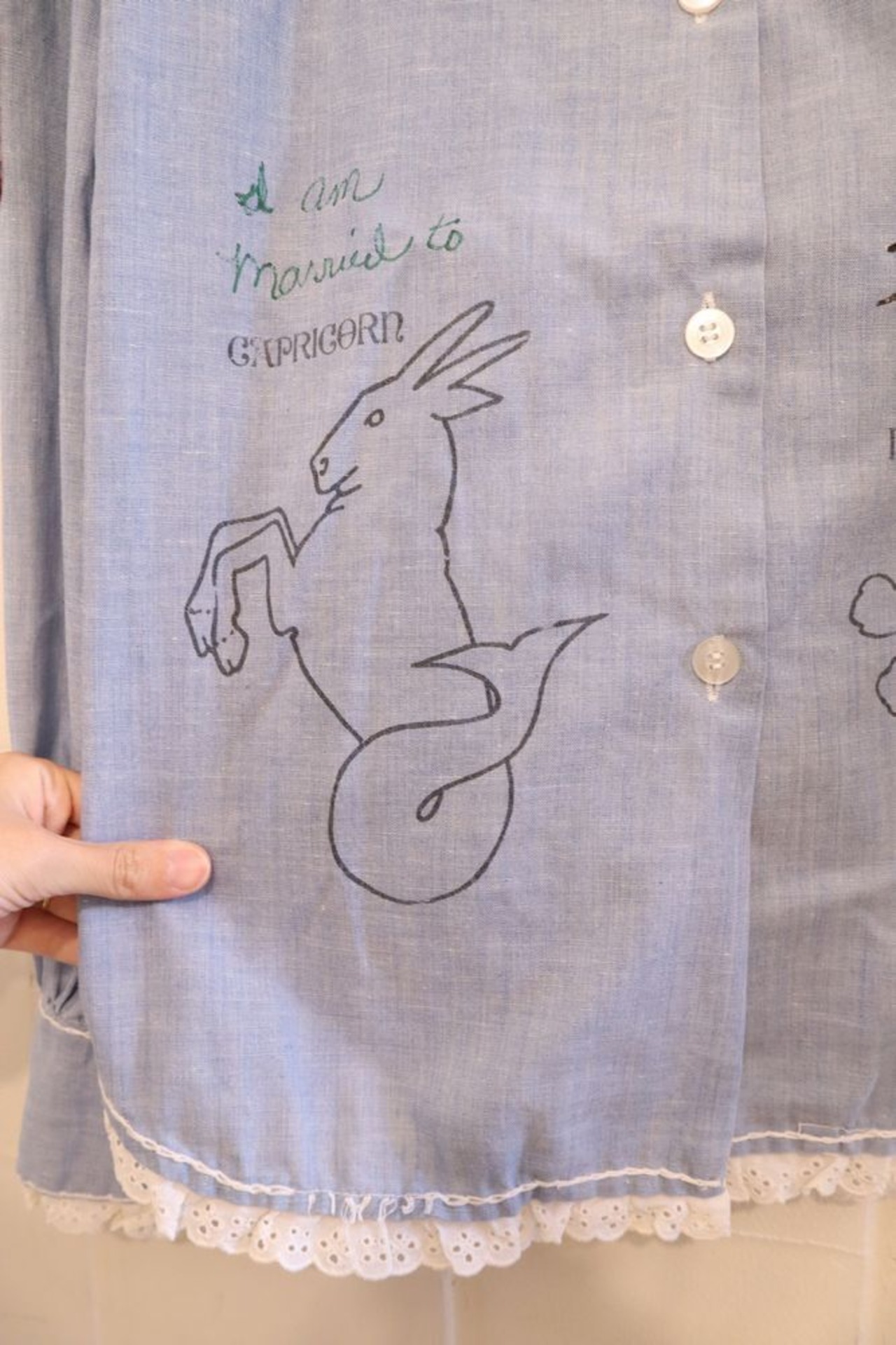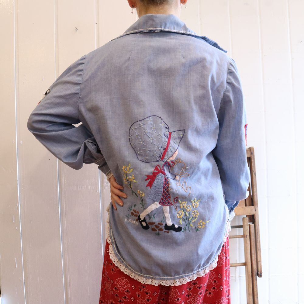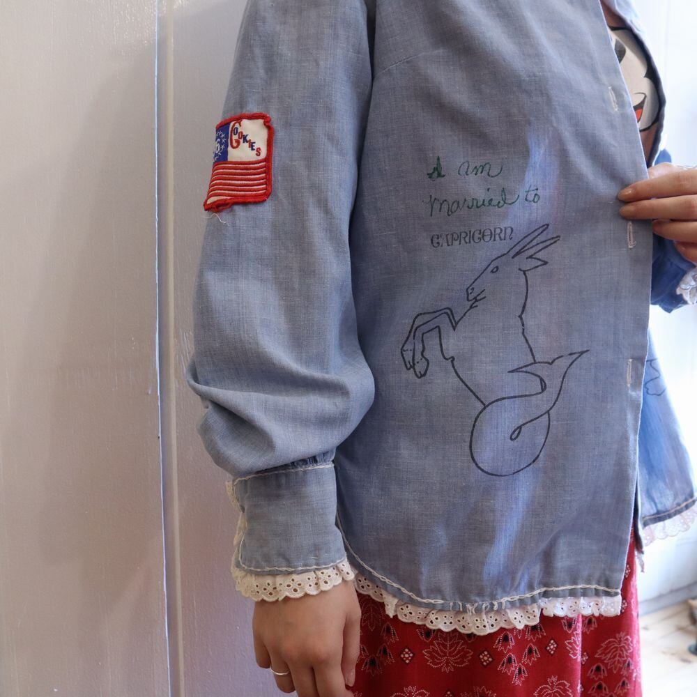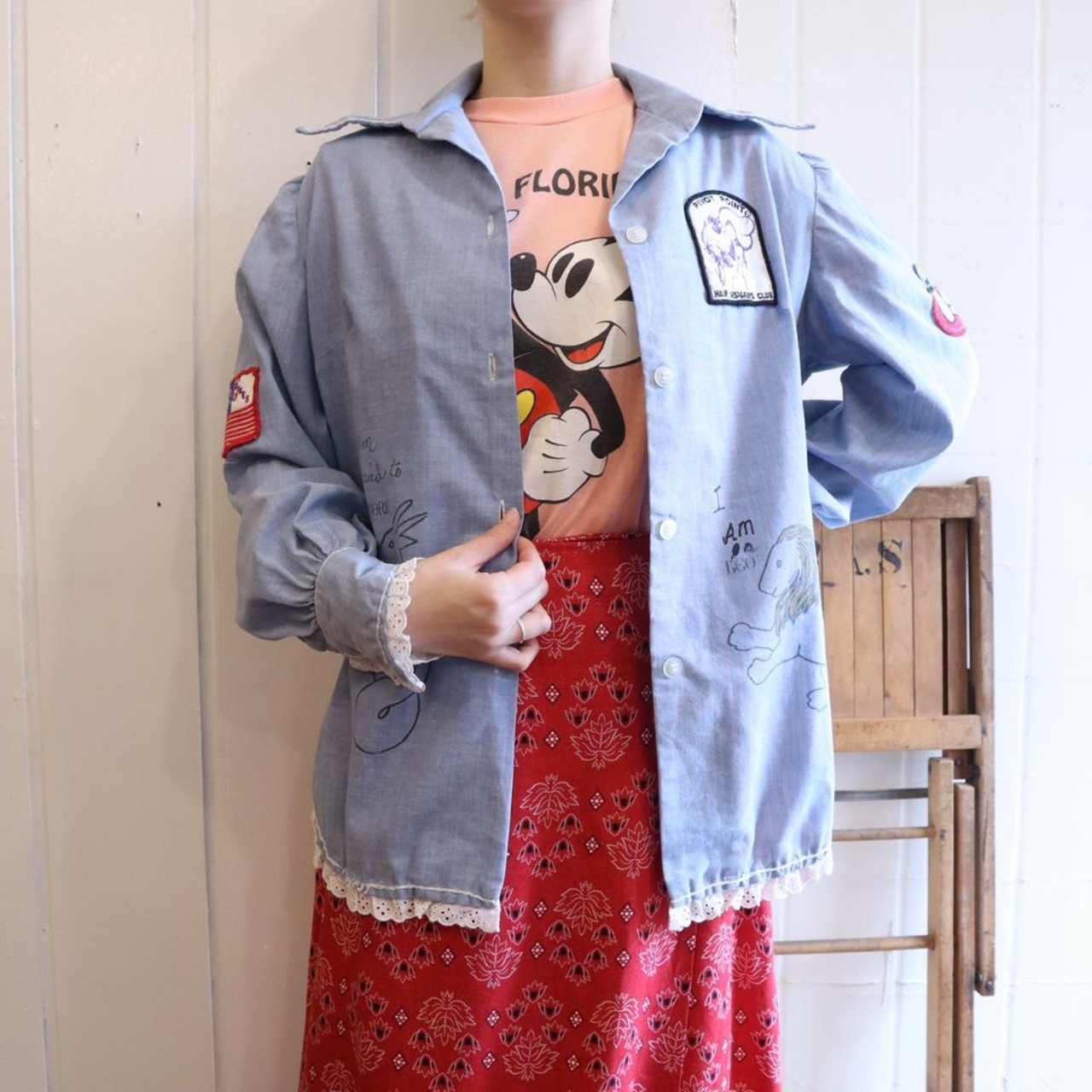 ハンドペイントや刺繍・ワッペンなど可愛いがつまったシャンブレーシャツです。