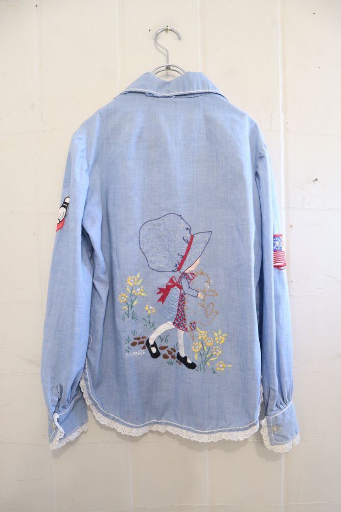 light-blue wappen & hand paint embroidery chambray shirt [l-242]