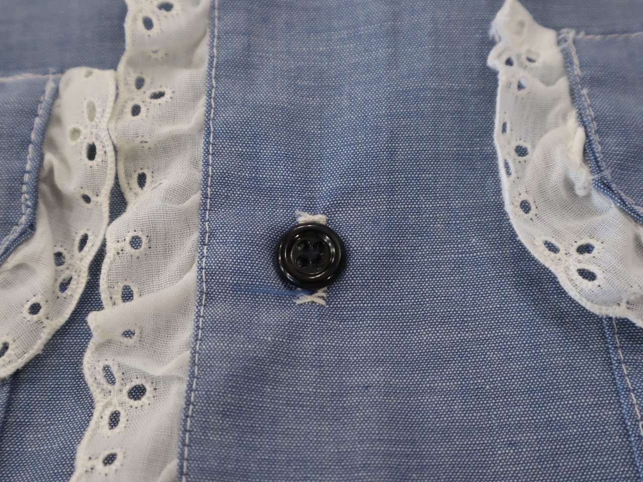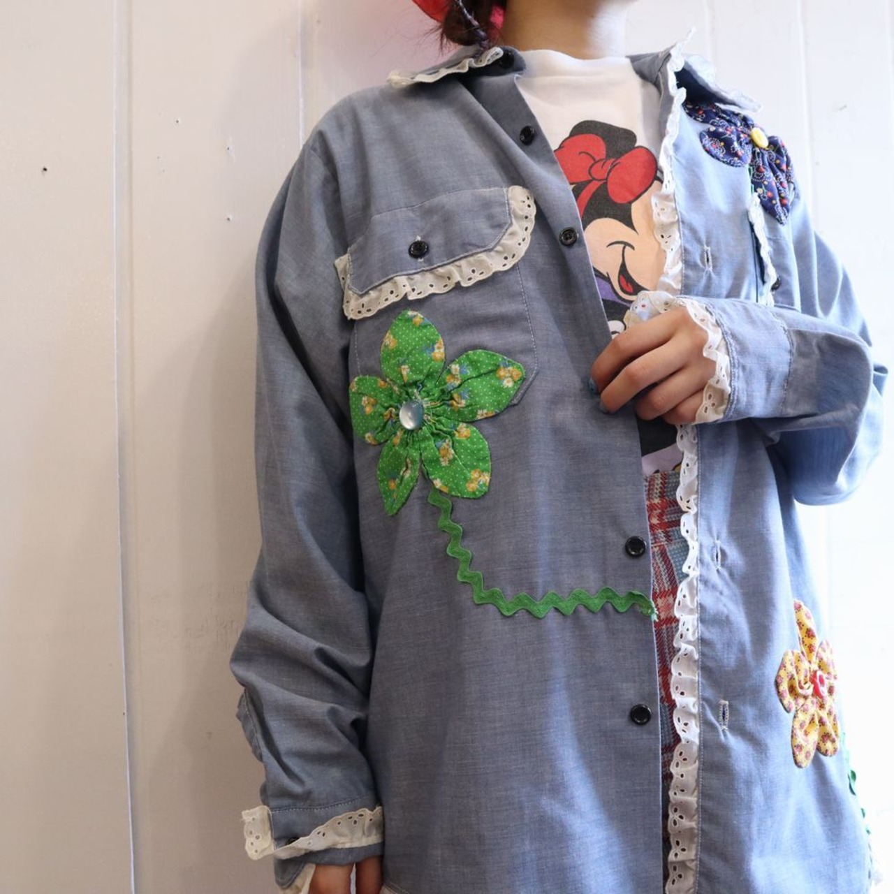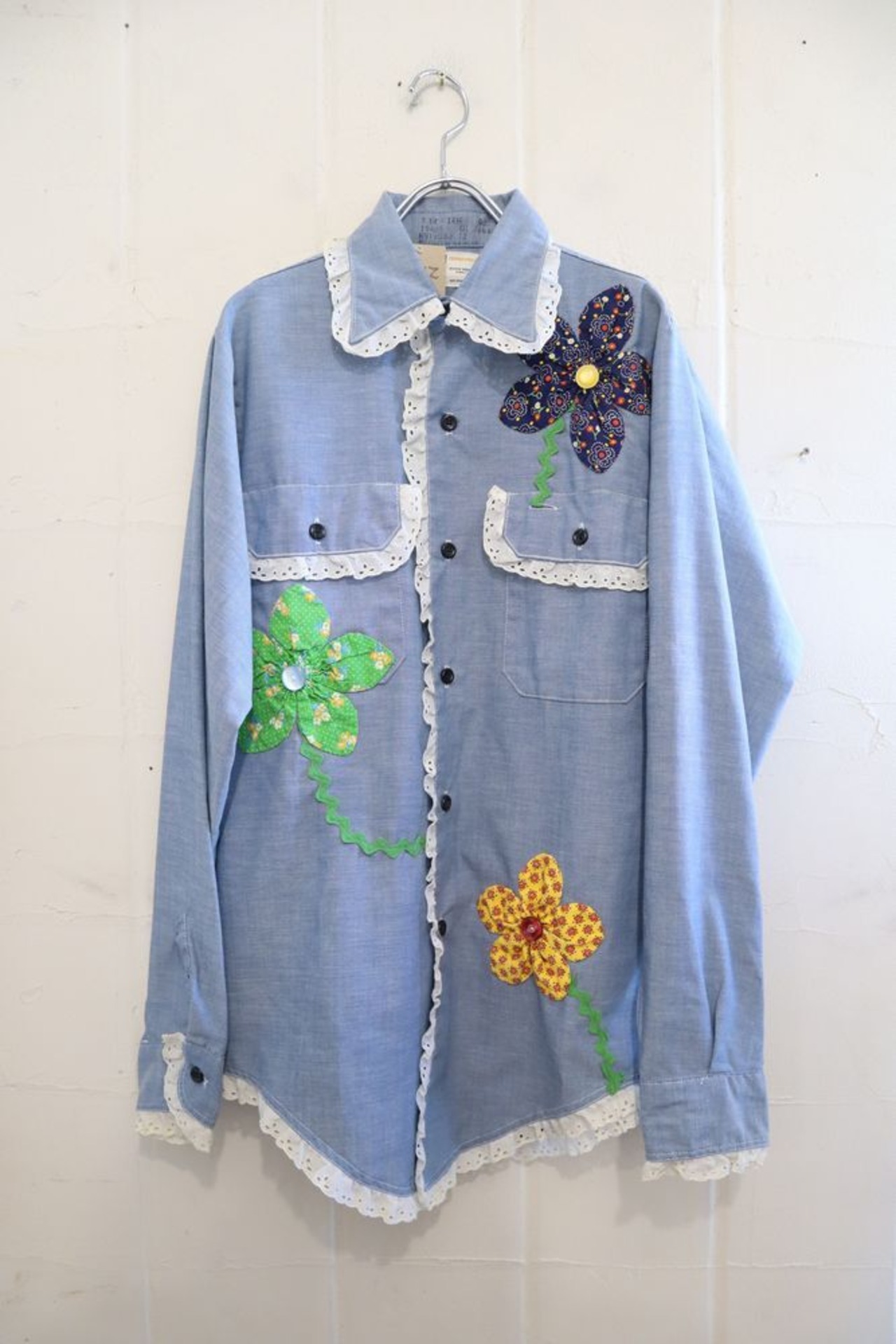 ”Sears” light-blue flower patch & lace chambray shirt [l-243]