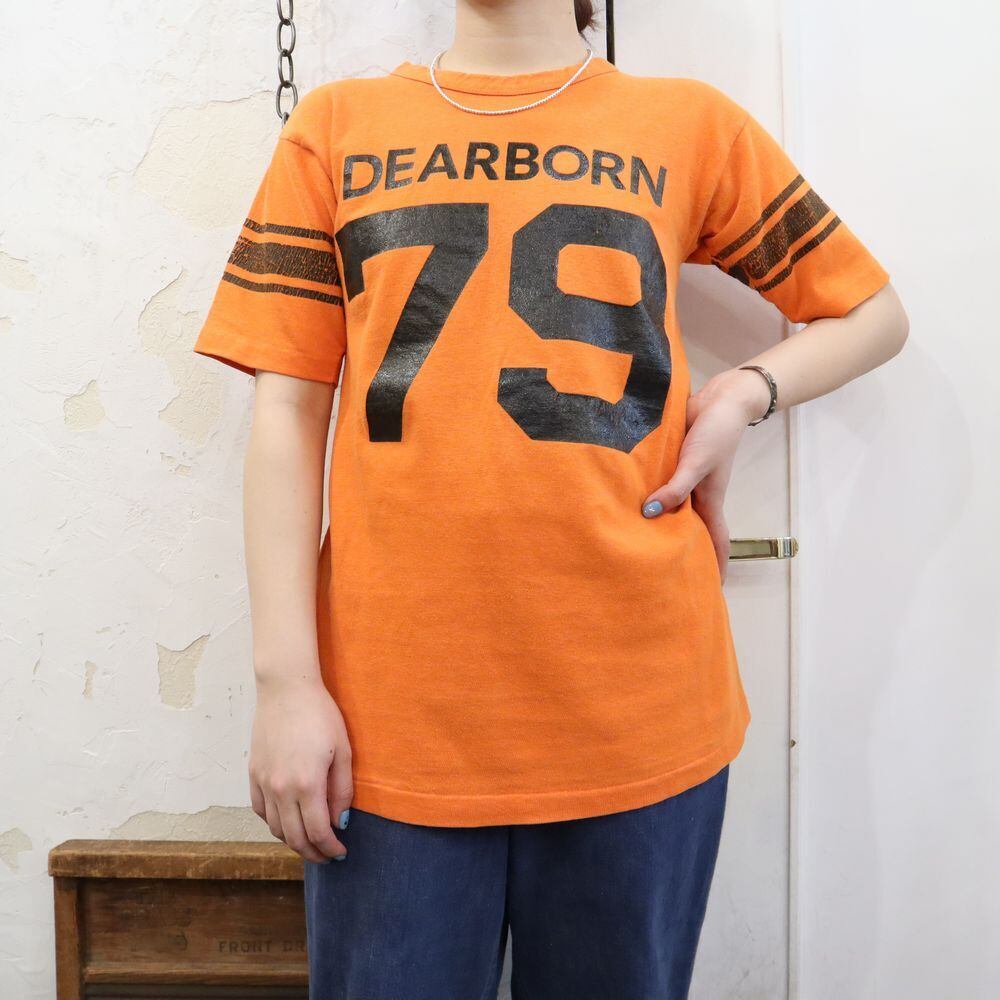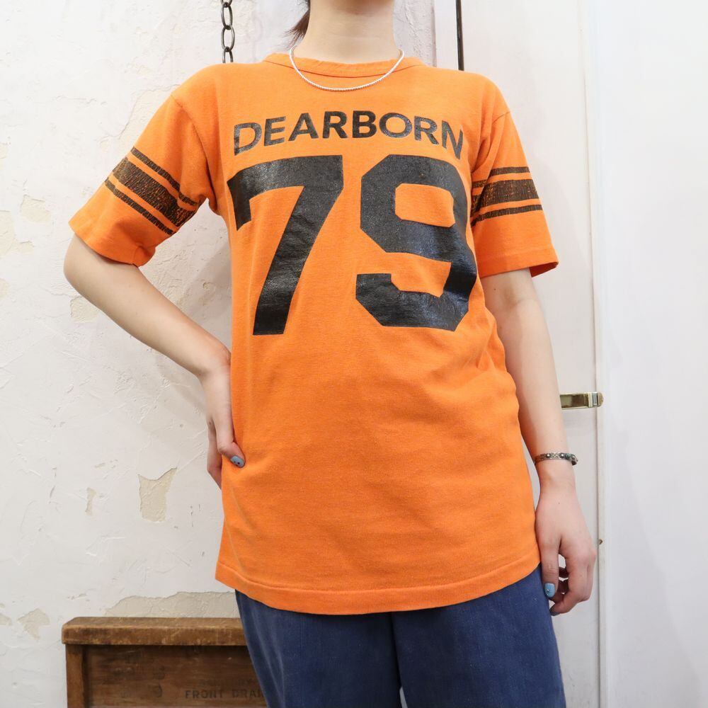 70s ”Champion” orange × black short sleeve football T-shirt [k-244]