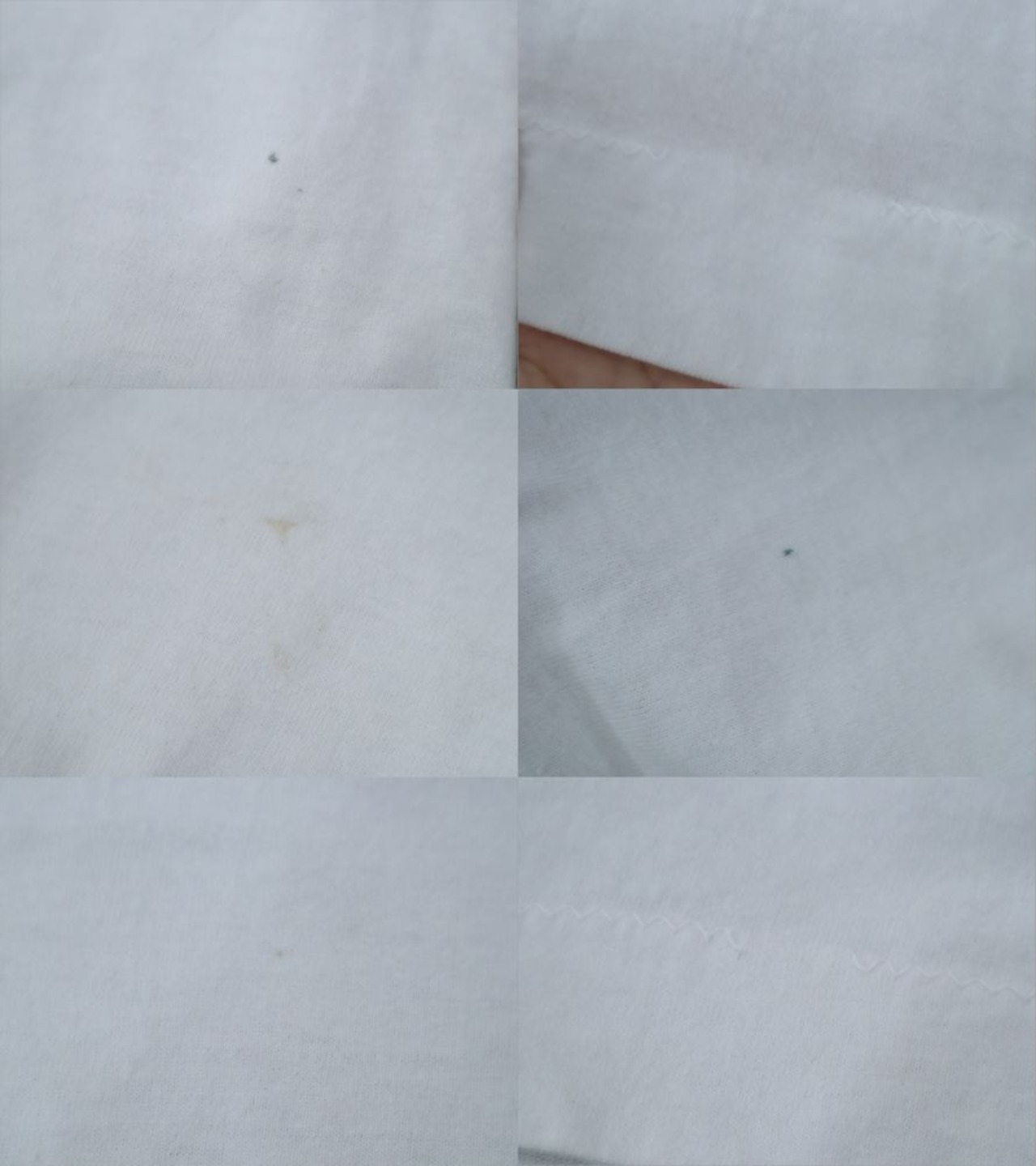 またボディに細かい汚れや薄いシミ・首元リブに小穴・袖に若干色移りが見受けられます。