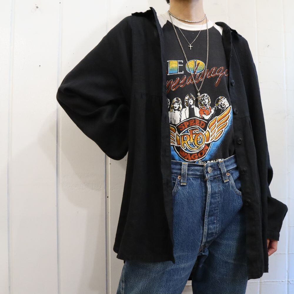 ”FLAX” black plain long sleeve linen shirt [k-253]