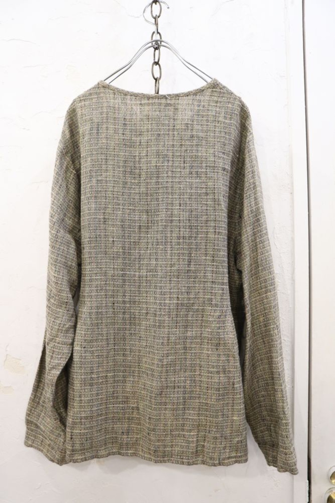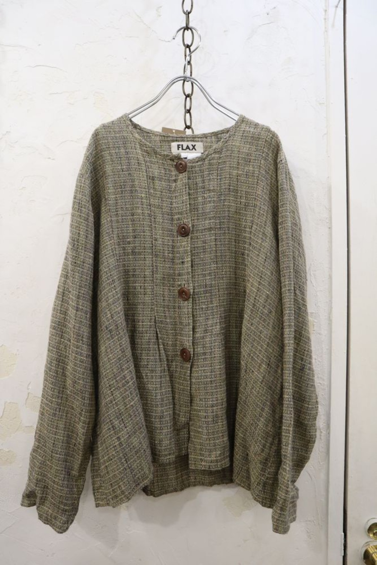 ”FLAX” green plaid long sleeve linen shirt [k-255]