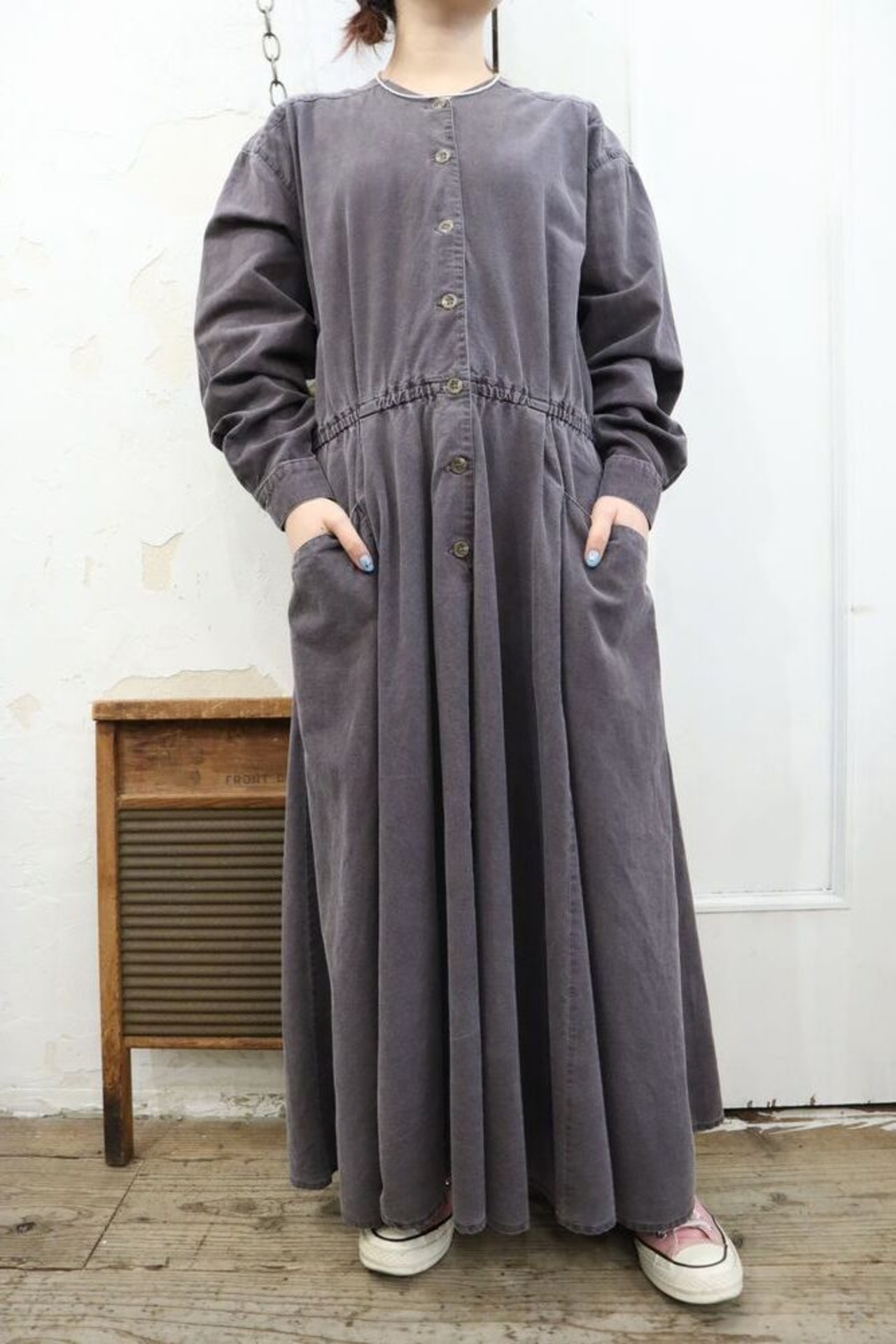 purple gray plain button design dress [k-267]