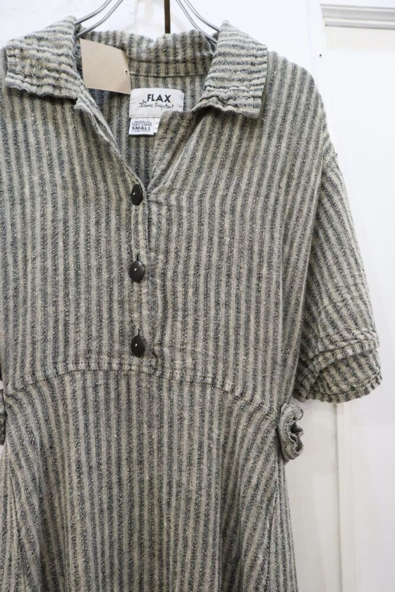 ”FLAX” gray stripe short sleeve linen dress [k-274]