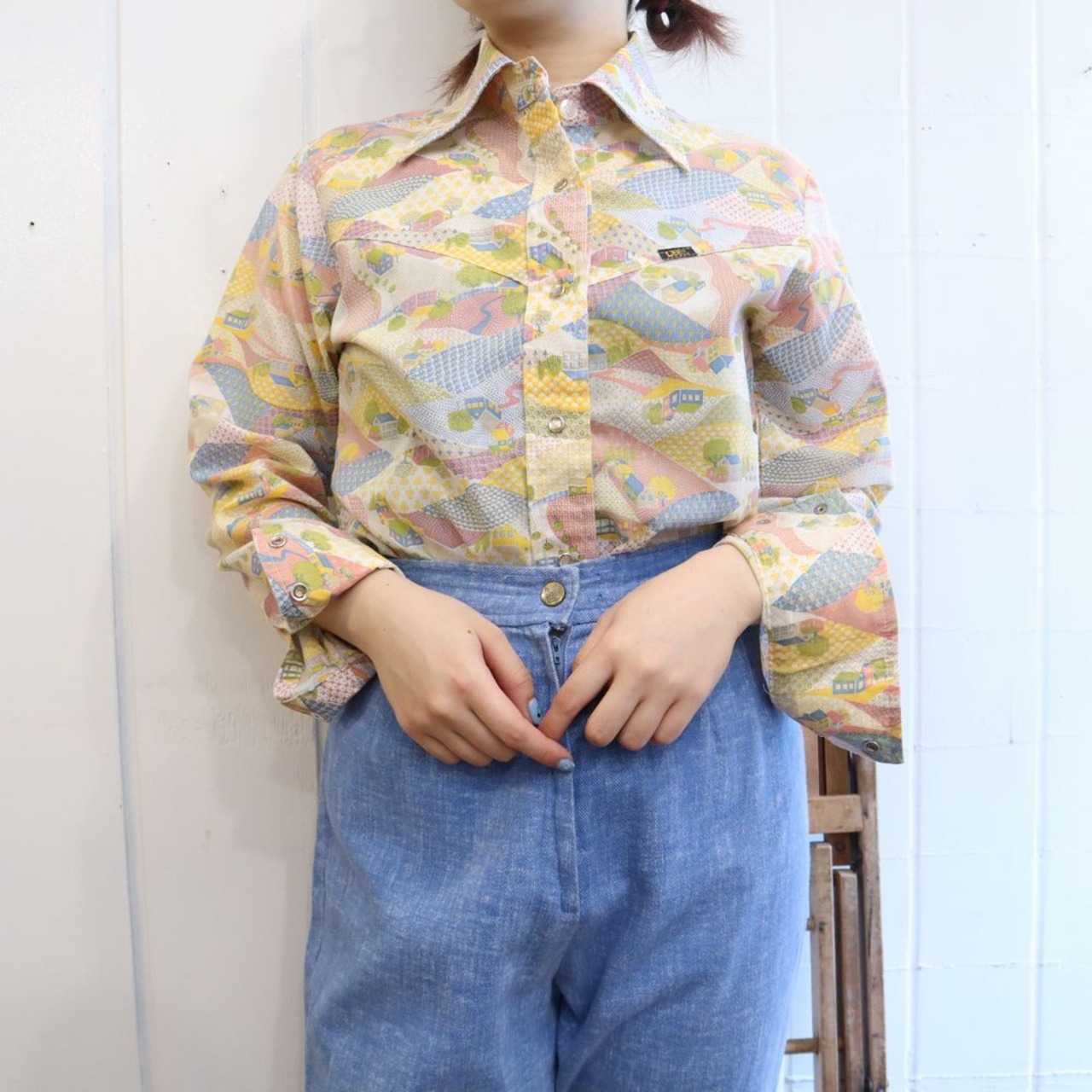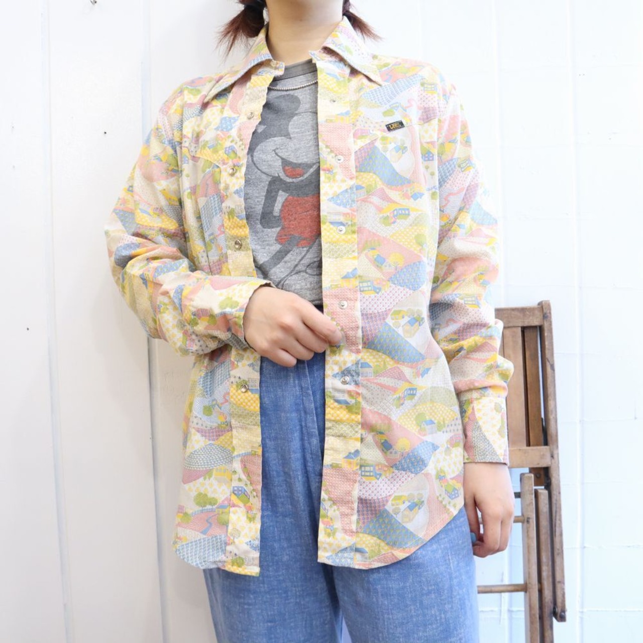 made in USA "Lee" pink × blue × yellow long sleeve shirt [l-281]