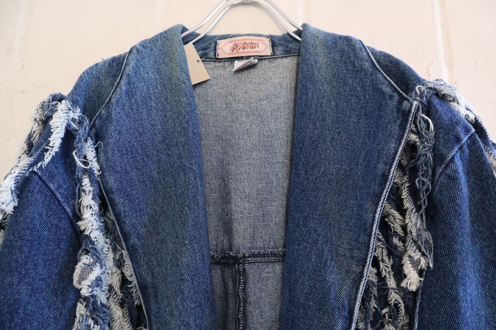 made in USA indigo blue fringe long sleeve denim jacket [l-302]