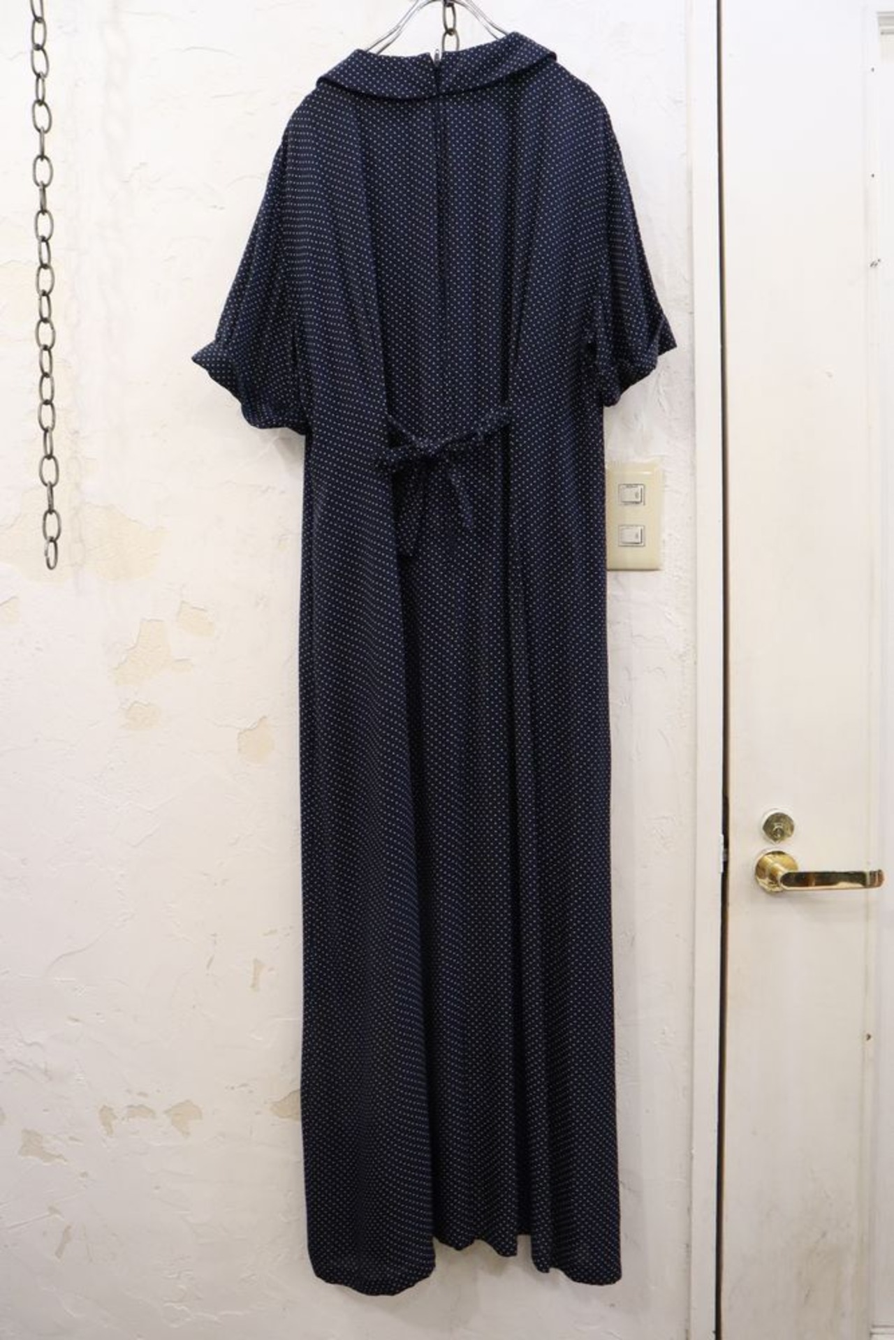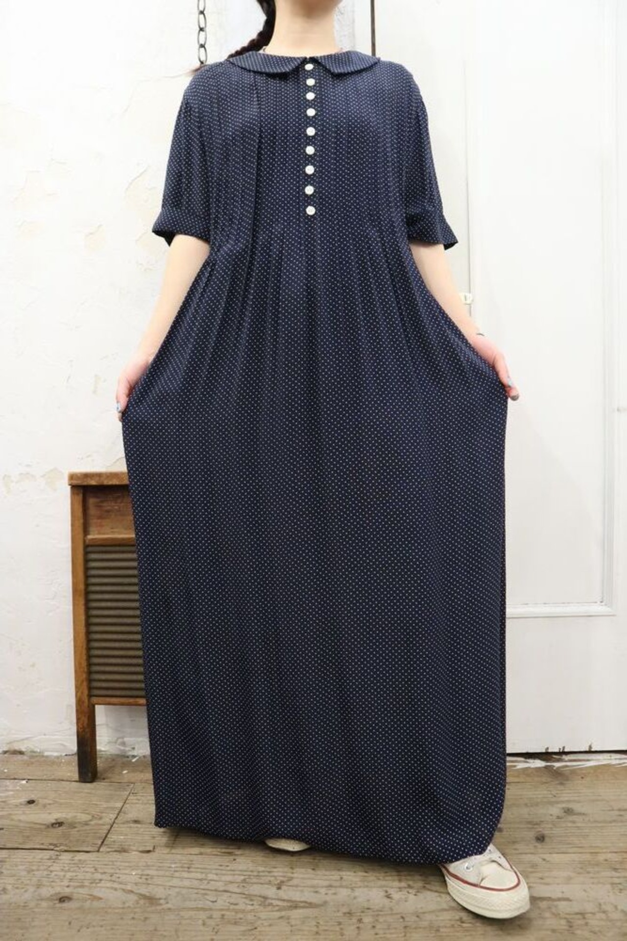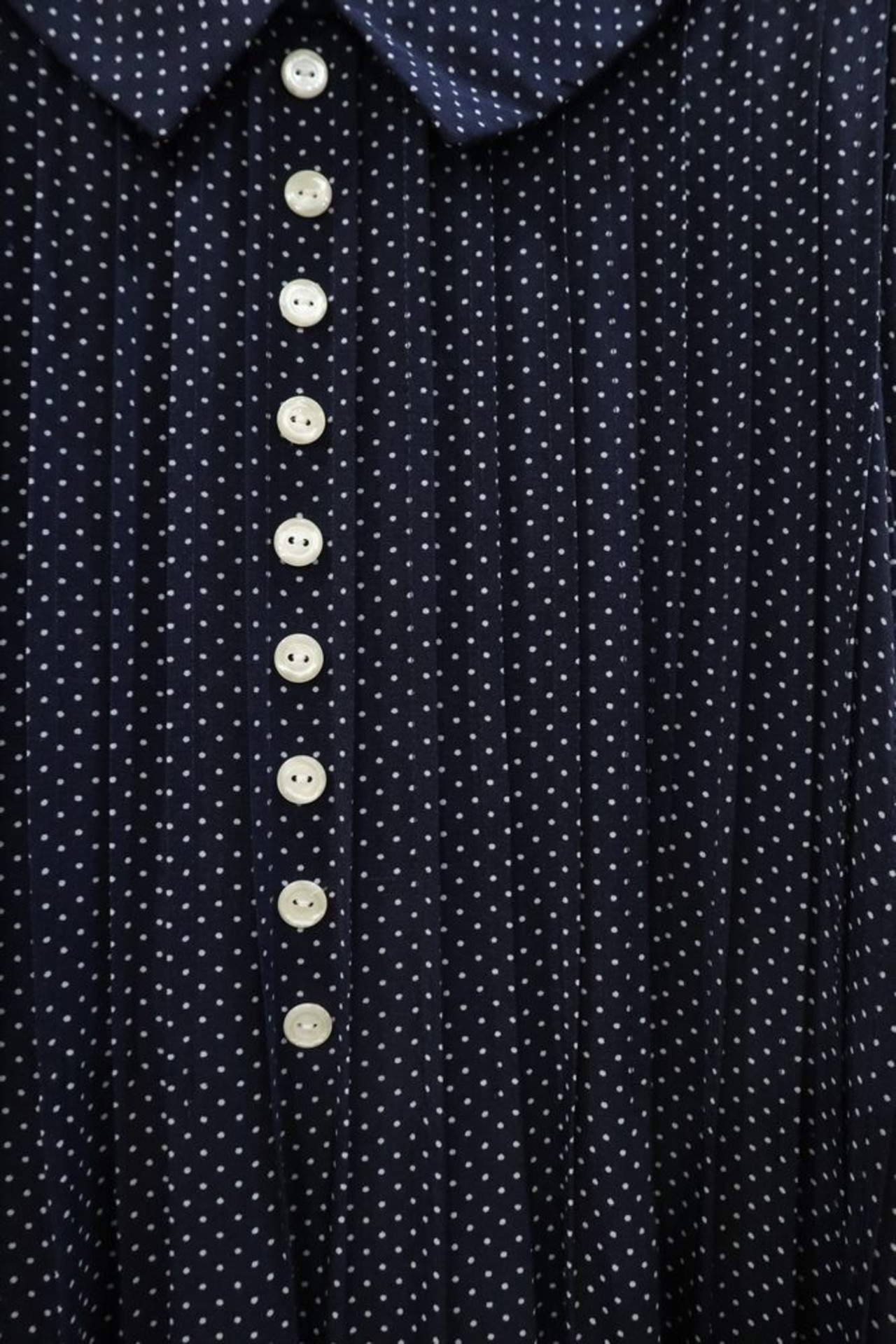 navy×white pindot shortsleeve rayon dress [k-306]