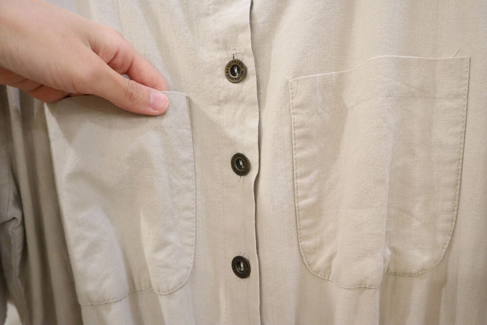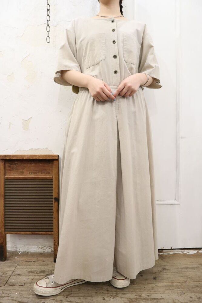 made in USA beige plain cotton shortsleeve dress [k-309]