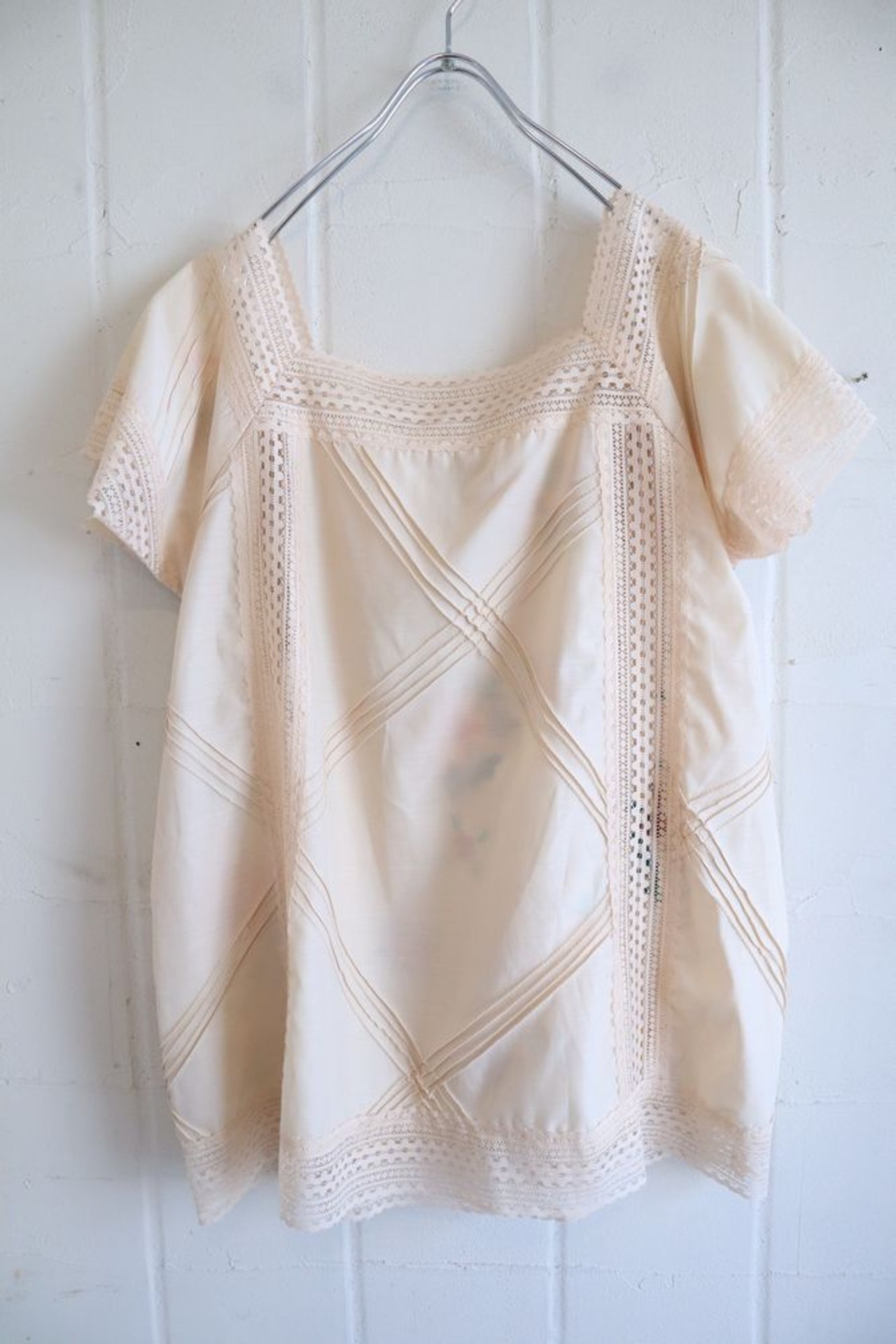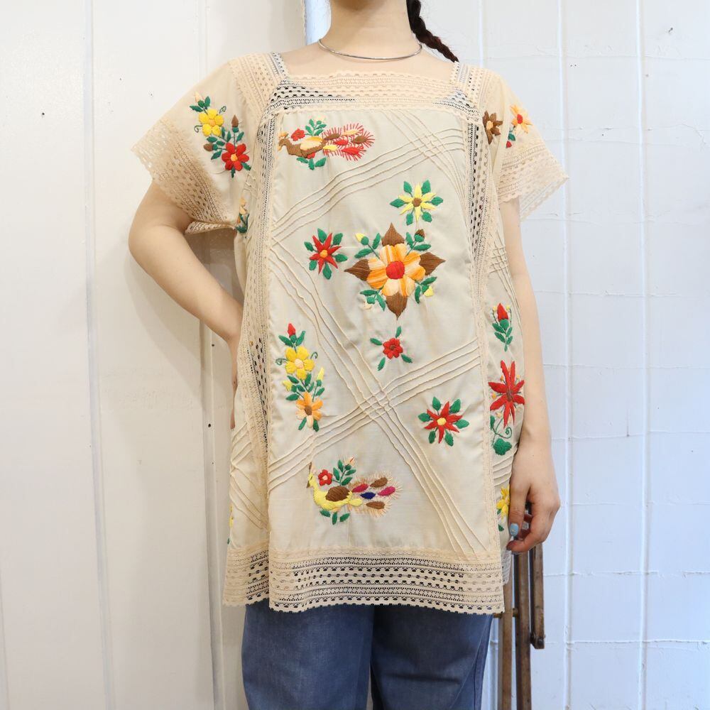 pink beige × colorful Mexican embroidery tunic [l-312]
