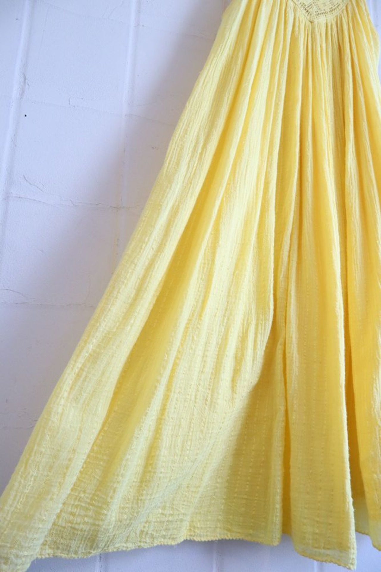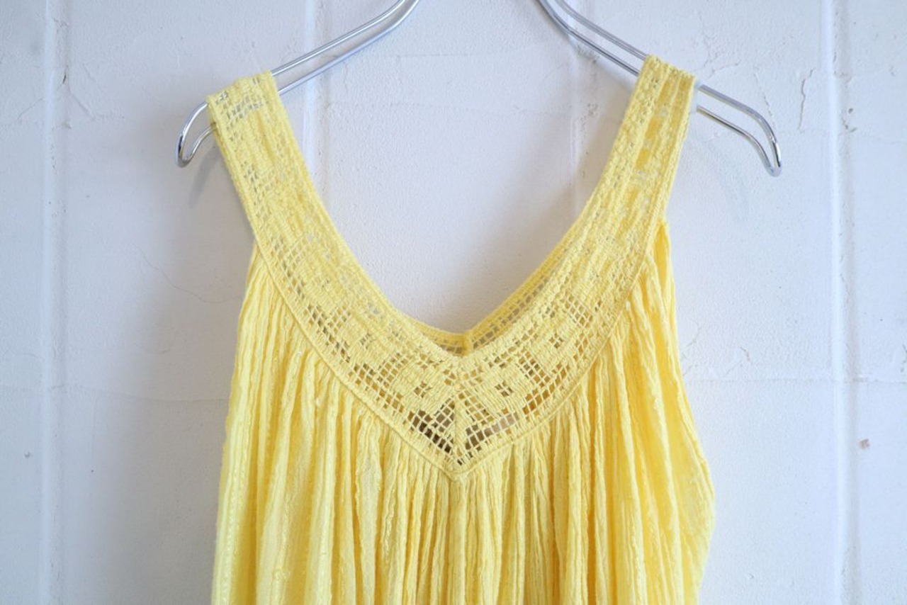 yellow crochet switching sleeveless greece dress [l-319]