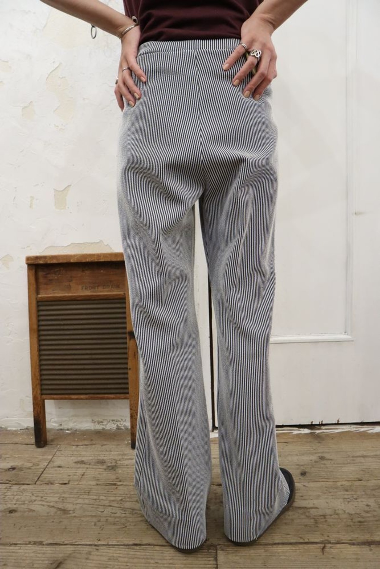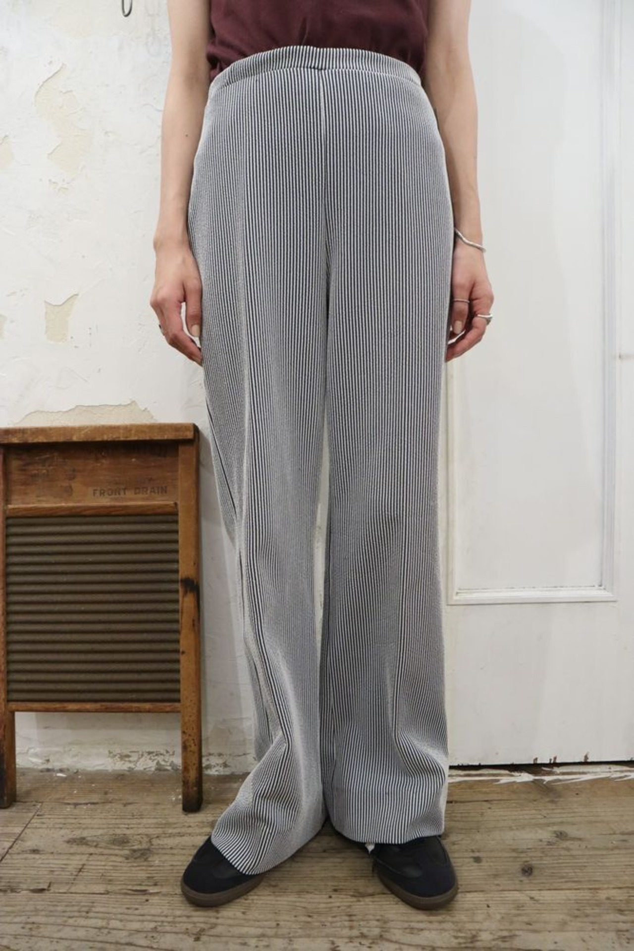 シンプルながら細めのストライプが可愛いパンツ。