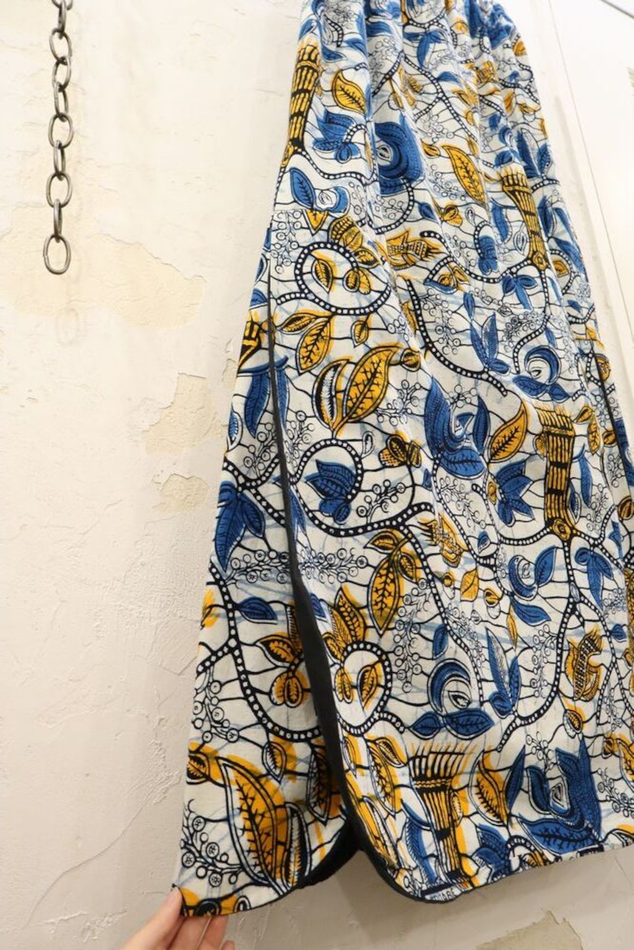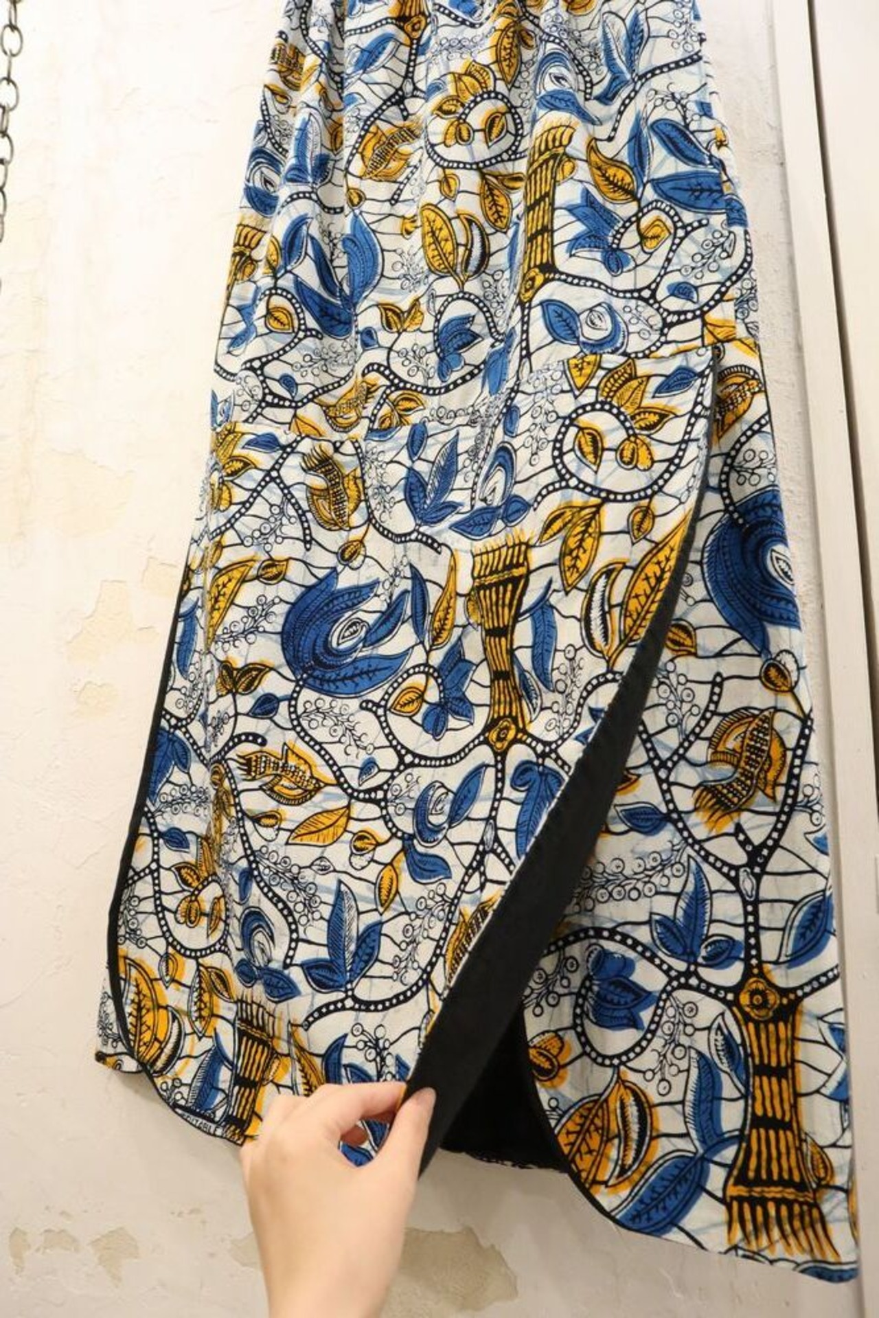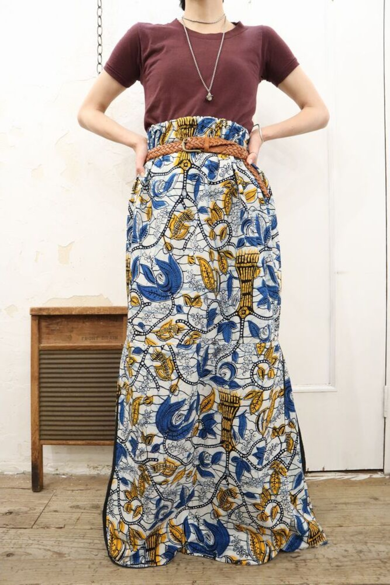 ブルーとオレンジのカラーリングが素敵なアフリカンバティックスカートです。