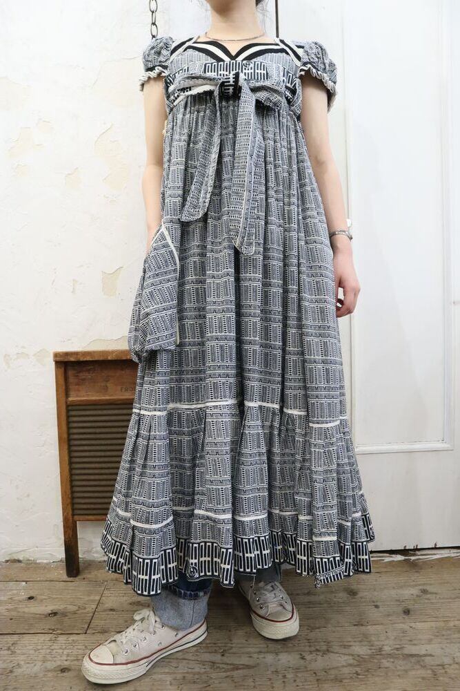生地量たっぷりでボリュームのあるシルエットが可愛いアフリカンバティックドレスです。