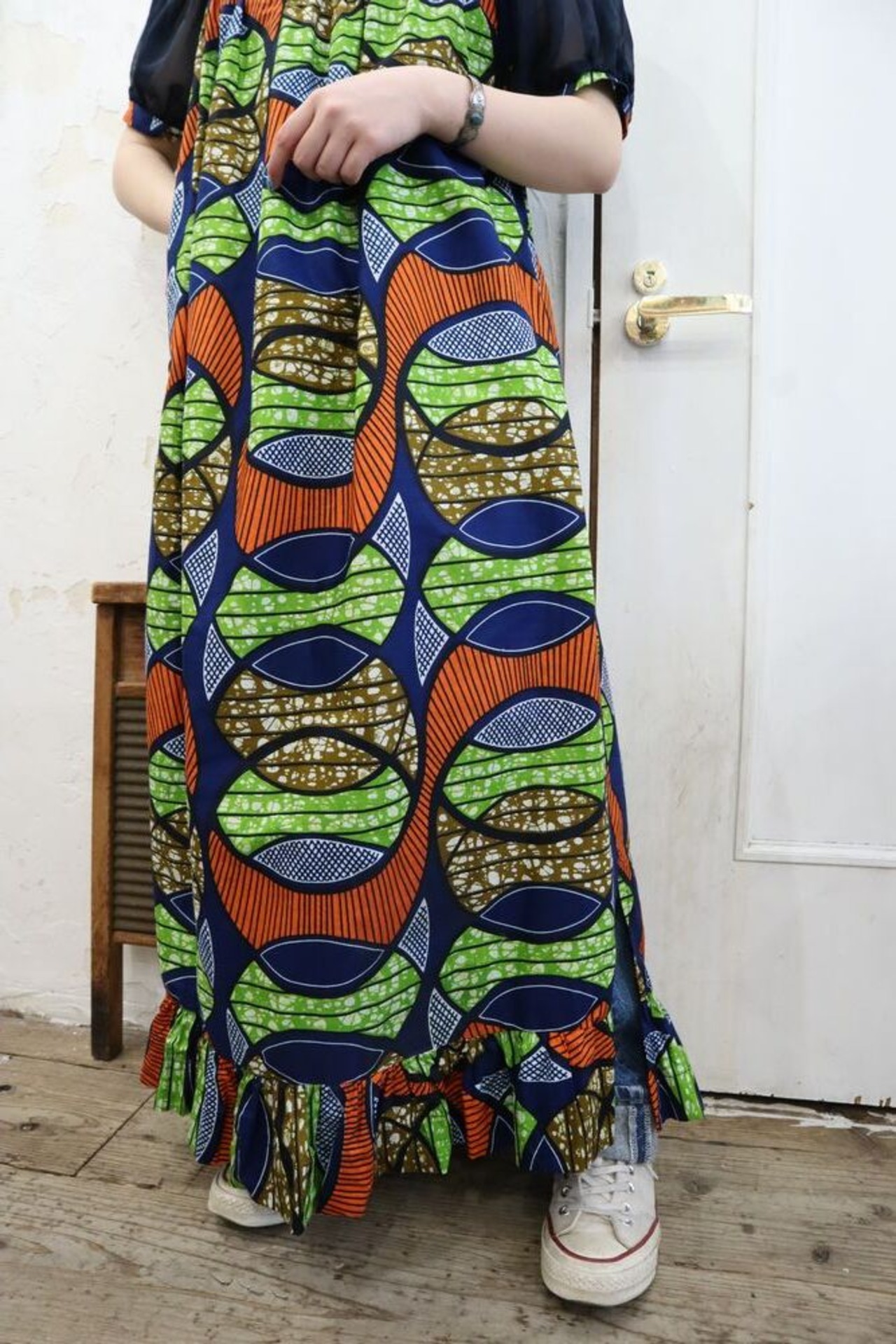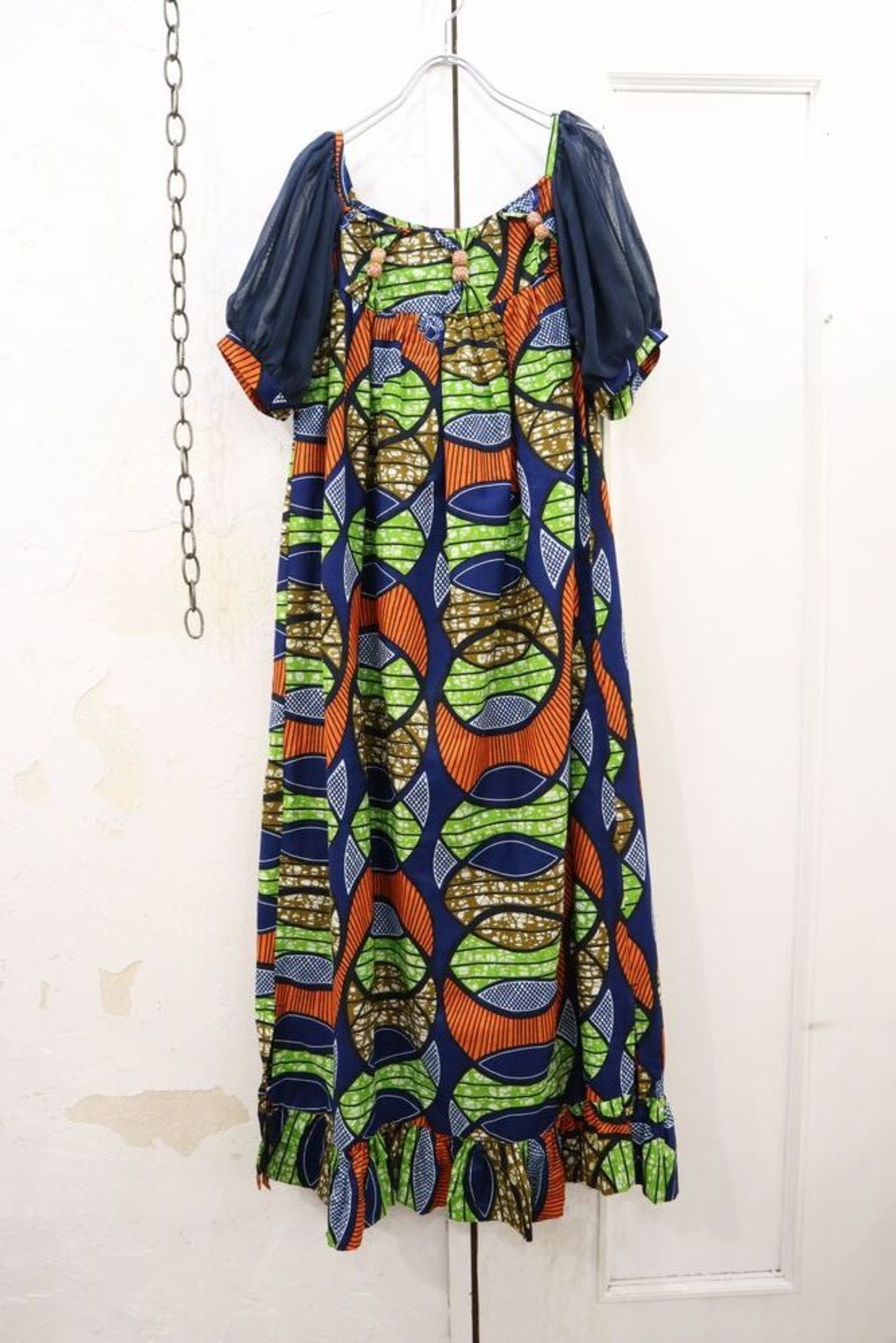 カラーリングが素敵なアフリカンバティックドレスです。