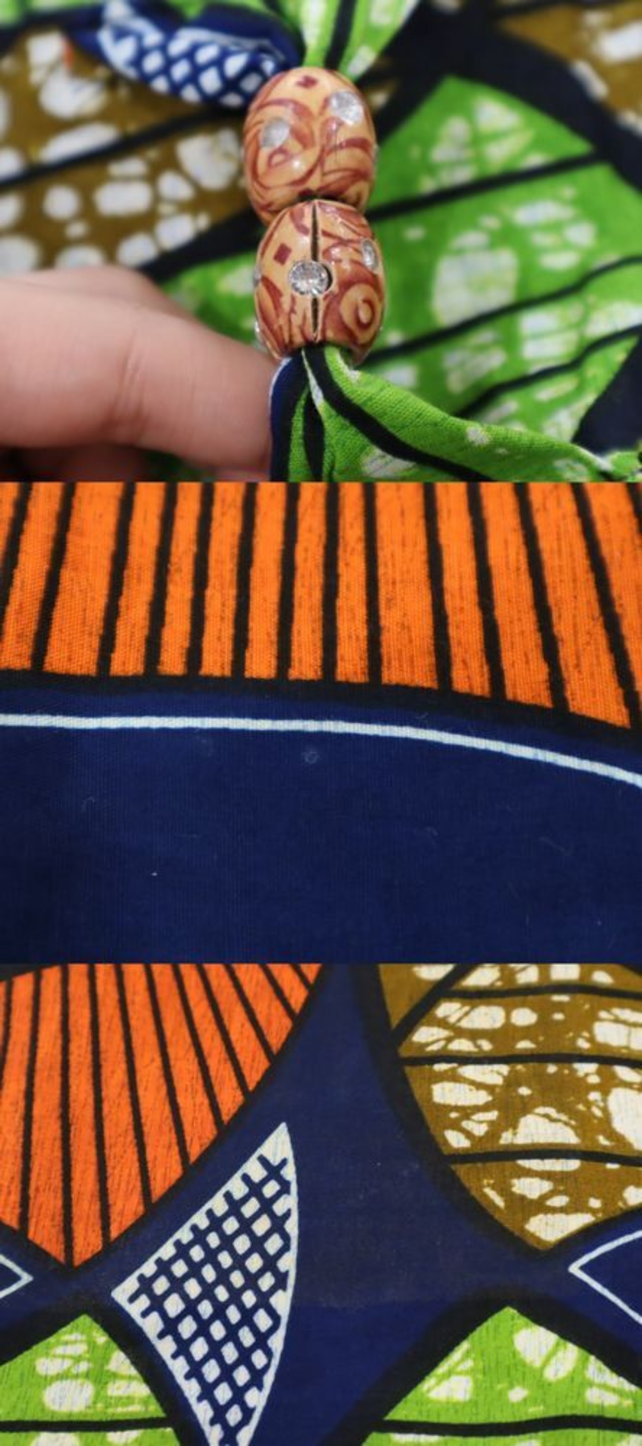 lite green × orange puff sleeve african batik dress [k-341]