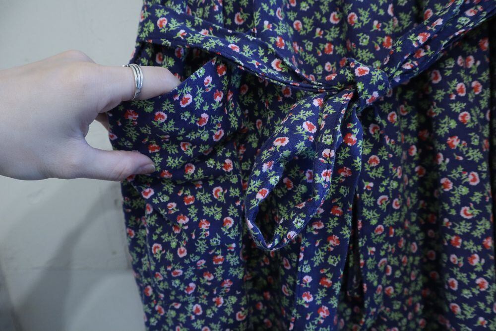 裾に生地のツレ、首元リボン先端にホツレが見受けられますが、いずれもあまり気にならない程度かと思われます。