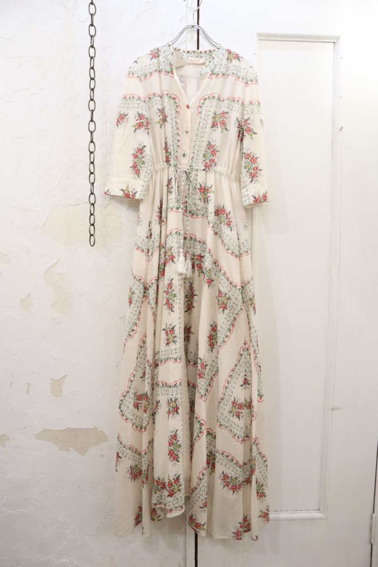 ”TORY BURCH” white × green × pink flower handkerchief pattern dress [k-355]