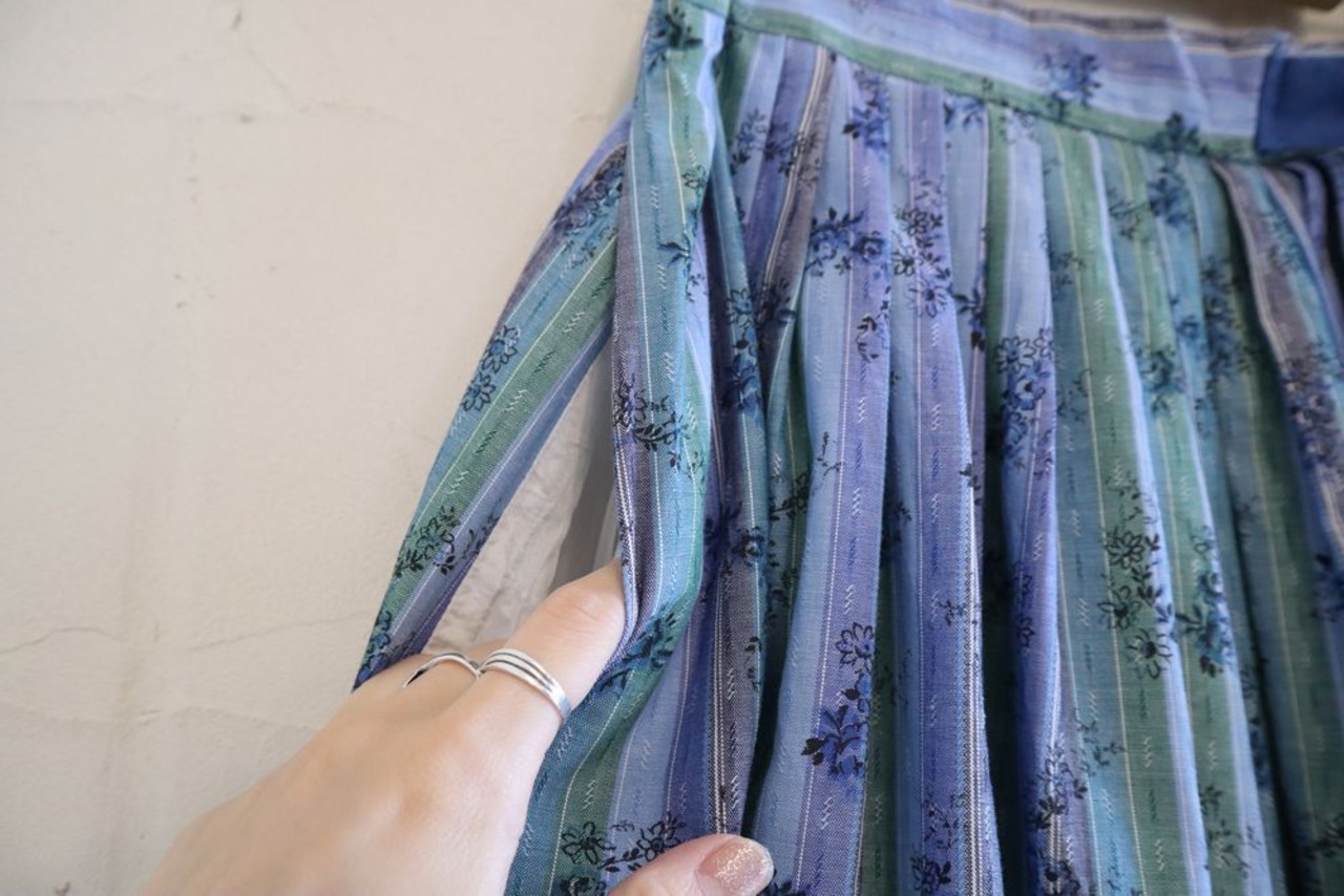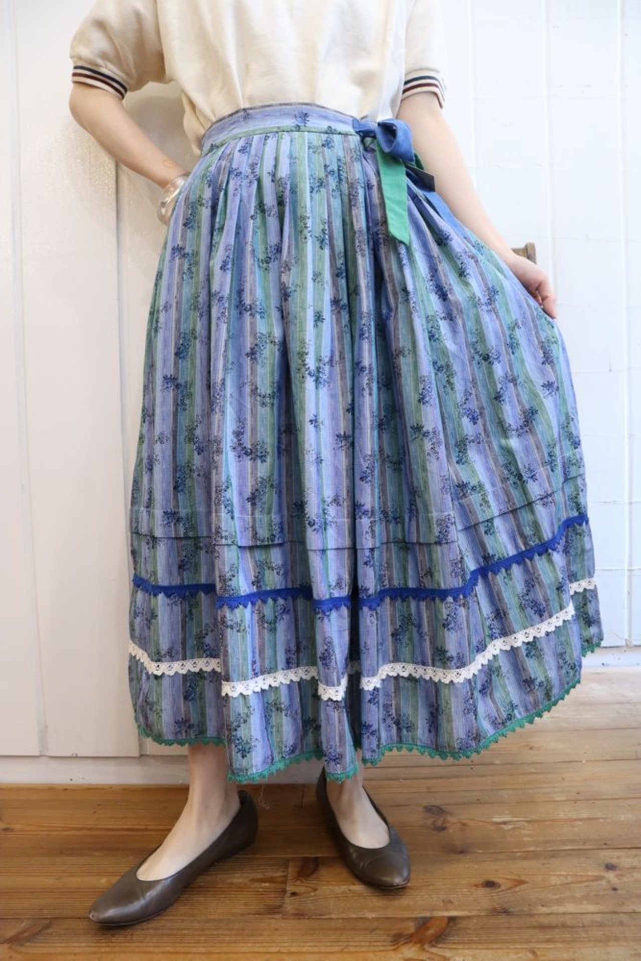 lightblue×green stripe&flower pattern tyrol skirt [l-364]