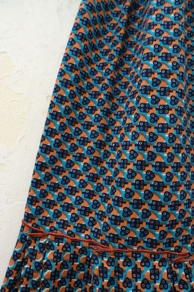 blue × orange × navy short sleeve african batik long dress [k-374]