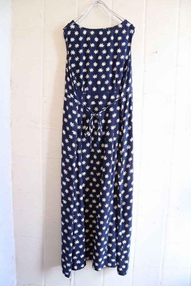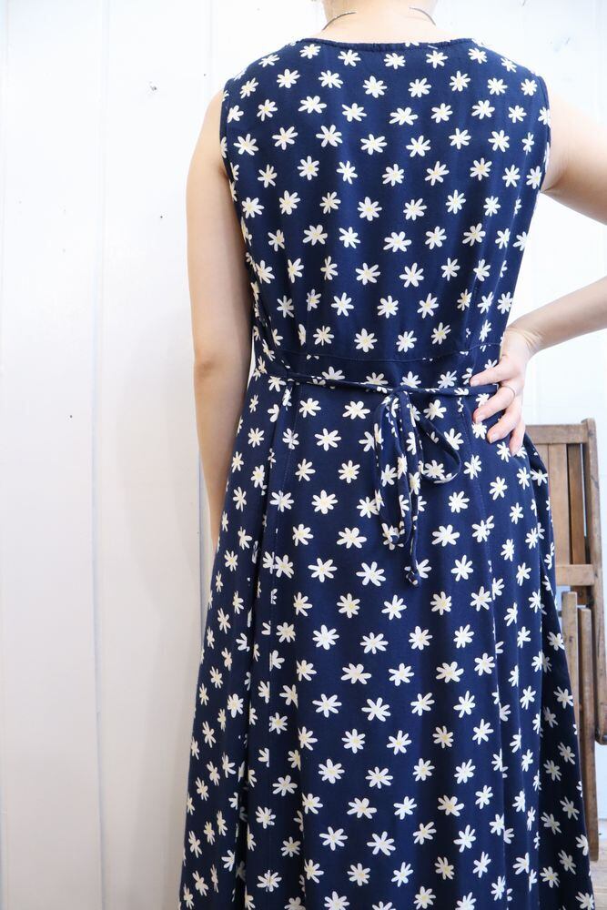 マーガレット柄が可愛いノースリーブレーヨンドレスです。
