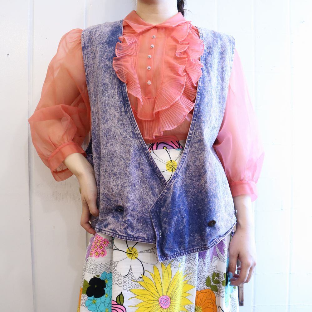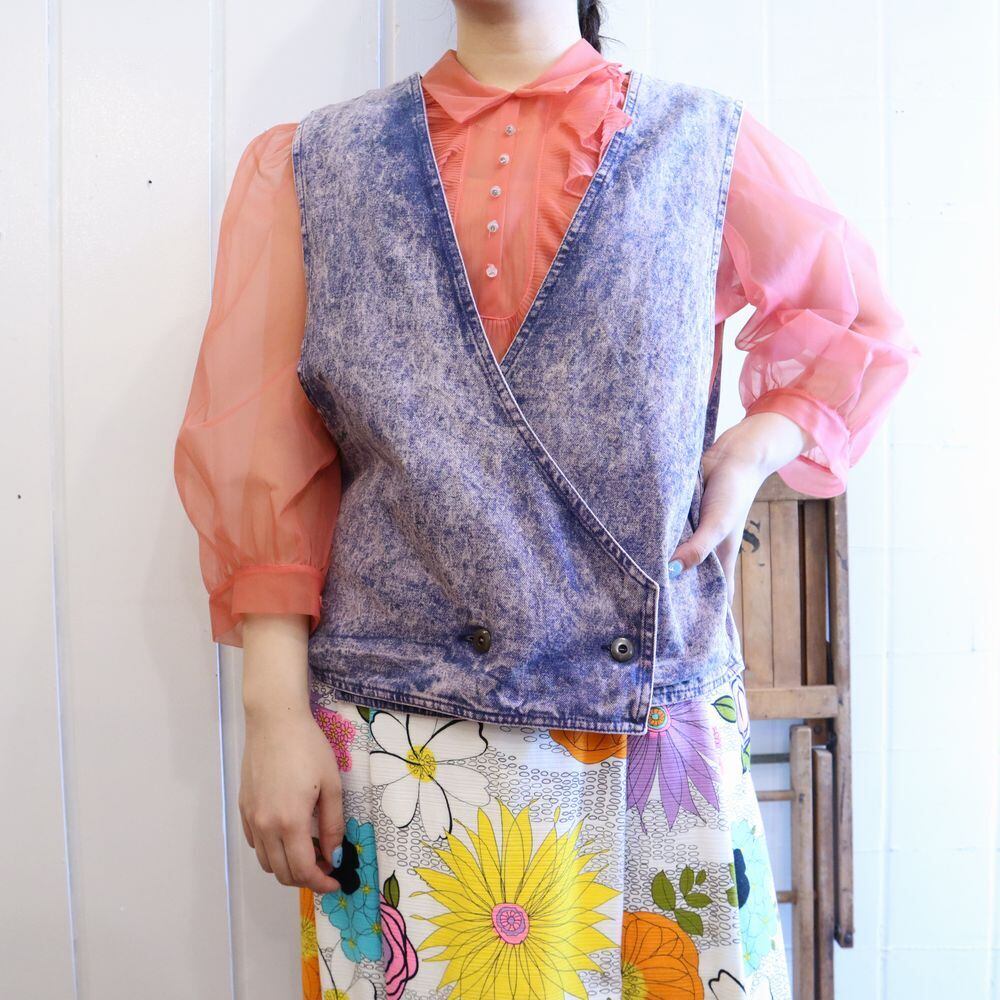 お色味が可愛いケミカルウォッシュのデニムベストです。