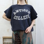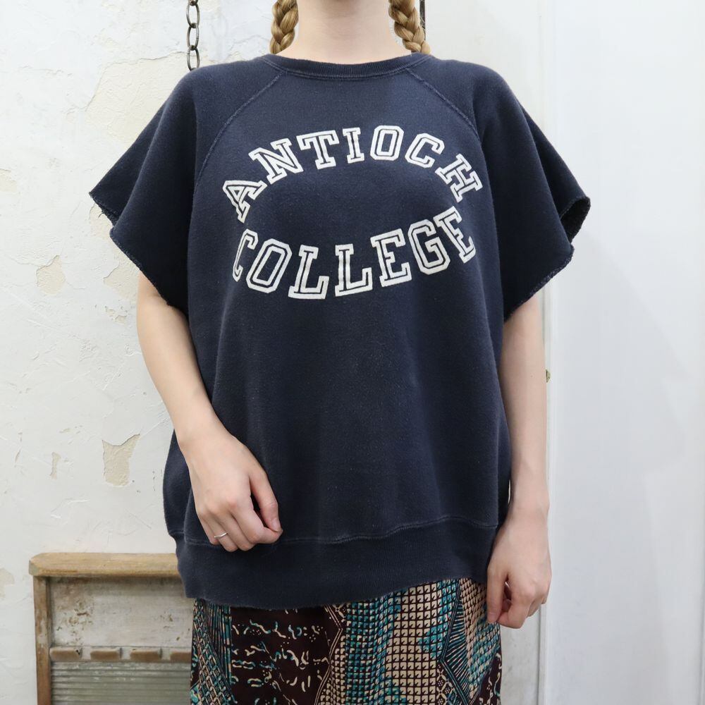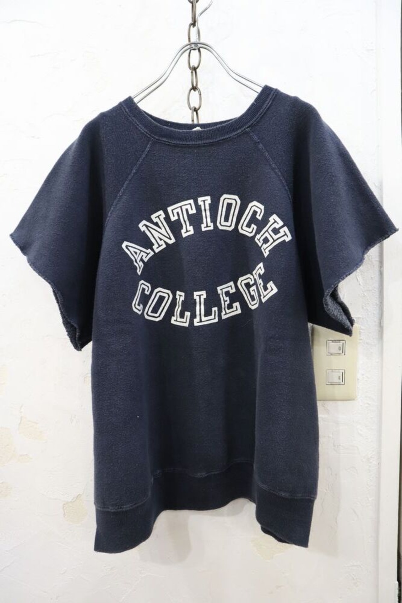 60s ”Champion” navy × white college print cut off sleeve sweat [k-418]
