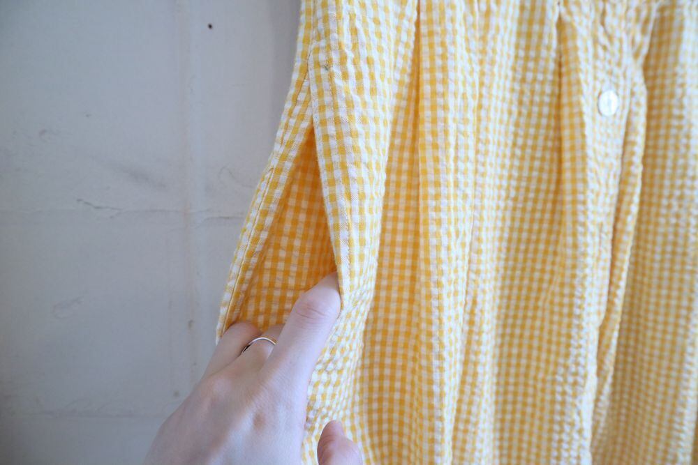 yellow×white ginghamcheck front button dress [l-438]