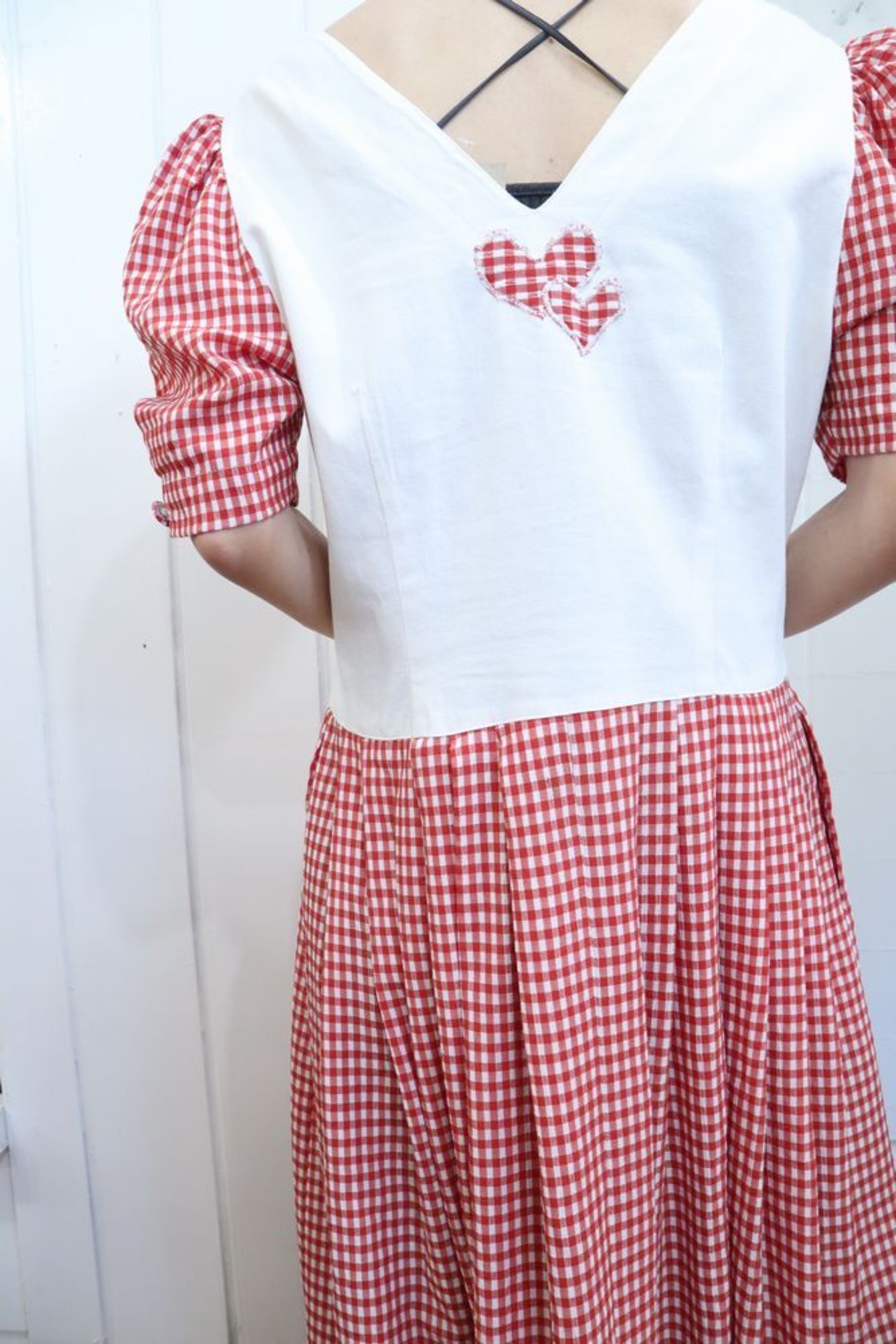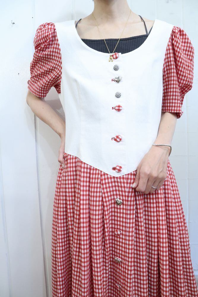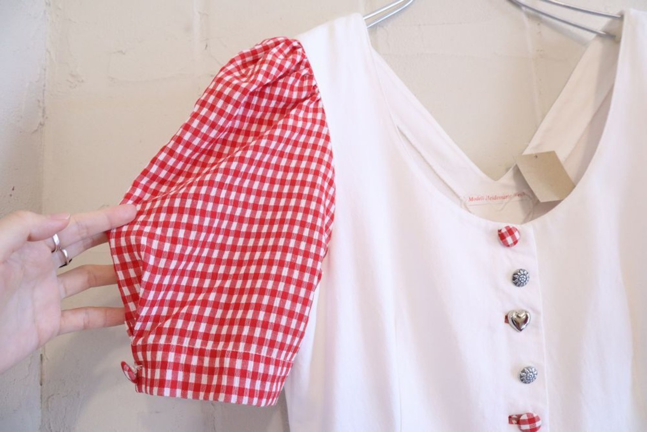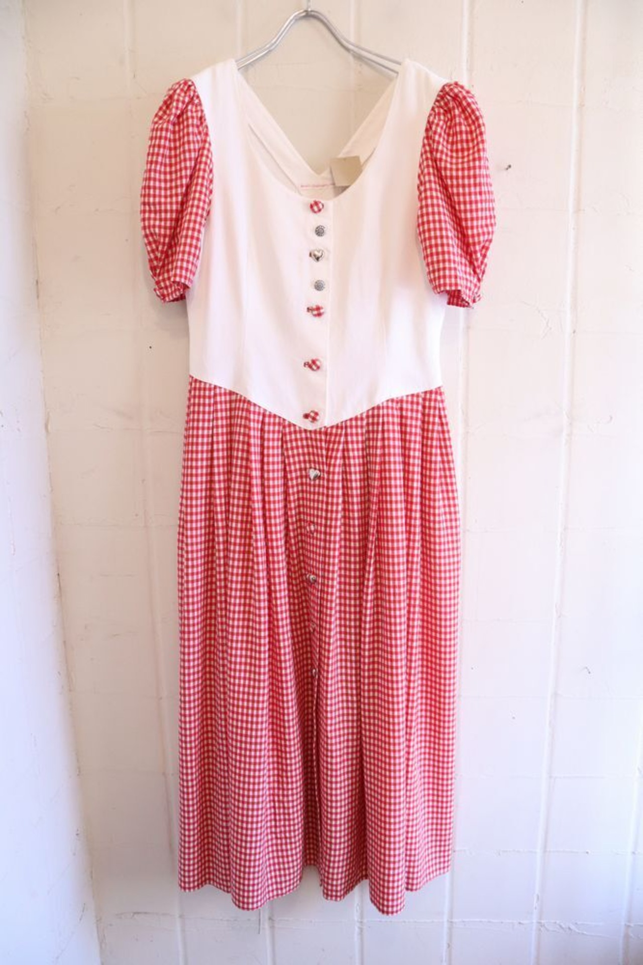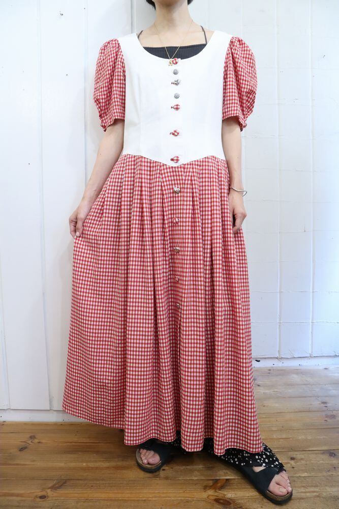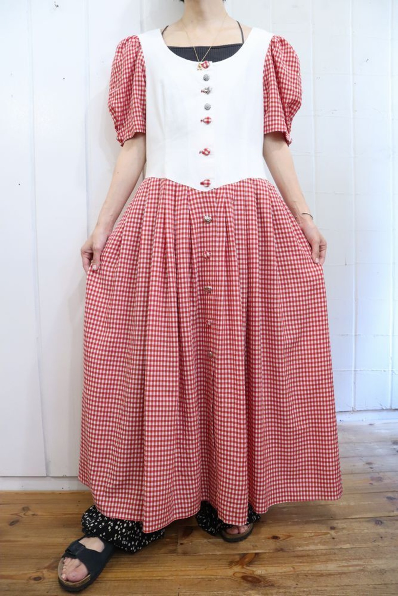 white×red ♡&ginghamcheck tyrol long dress [l-440]