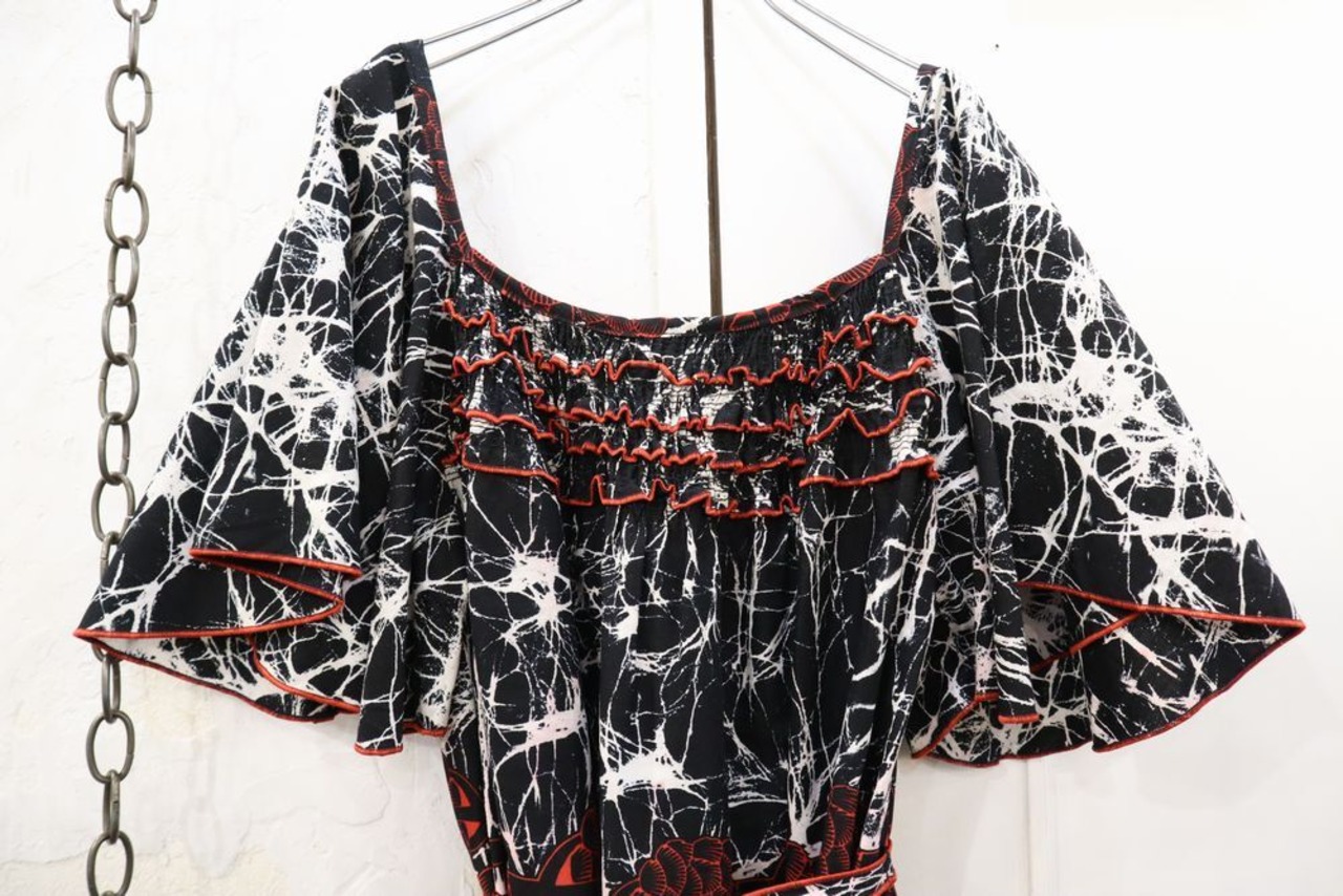 目を惹くカッコイイ柄とふんわりとしたお袖の可愛いが楽しめるドレスです。