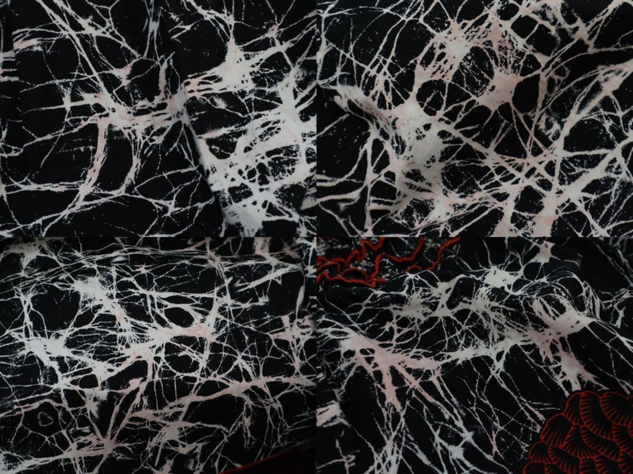 ホワイト部分にいくつか色移りと思われるピンク汚れがございますが、古着の味わいとして着て頂けるかと思われます。