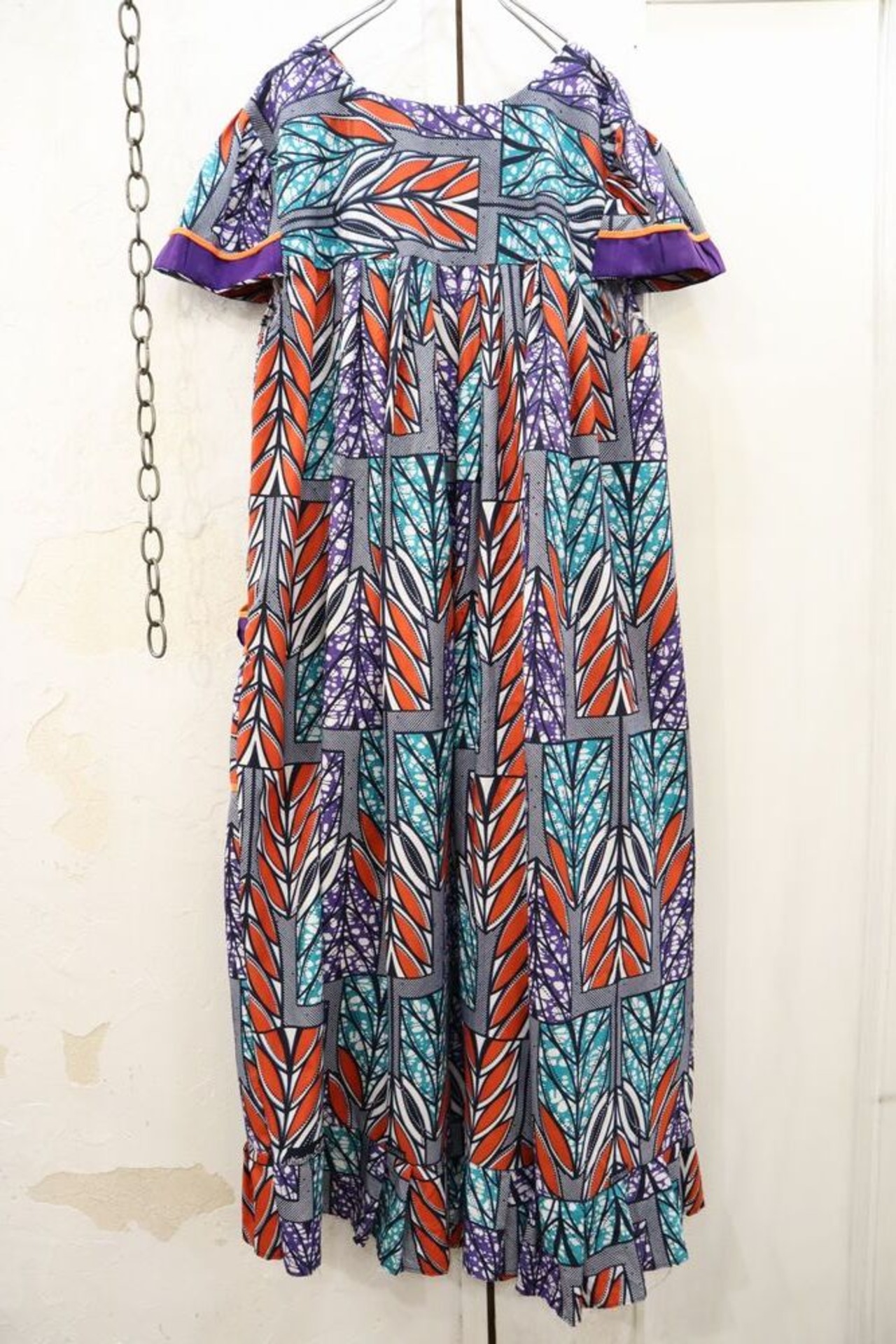 purple × orange × blue african batik short sleeve dress [k-443]