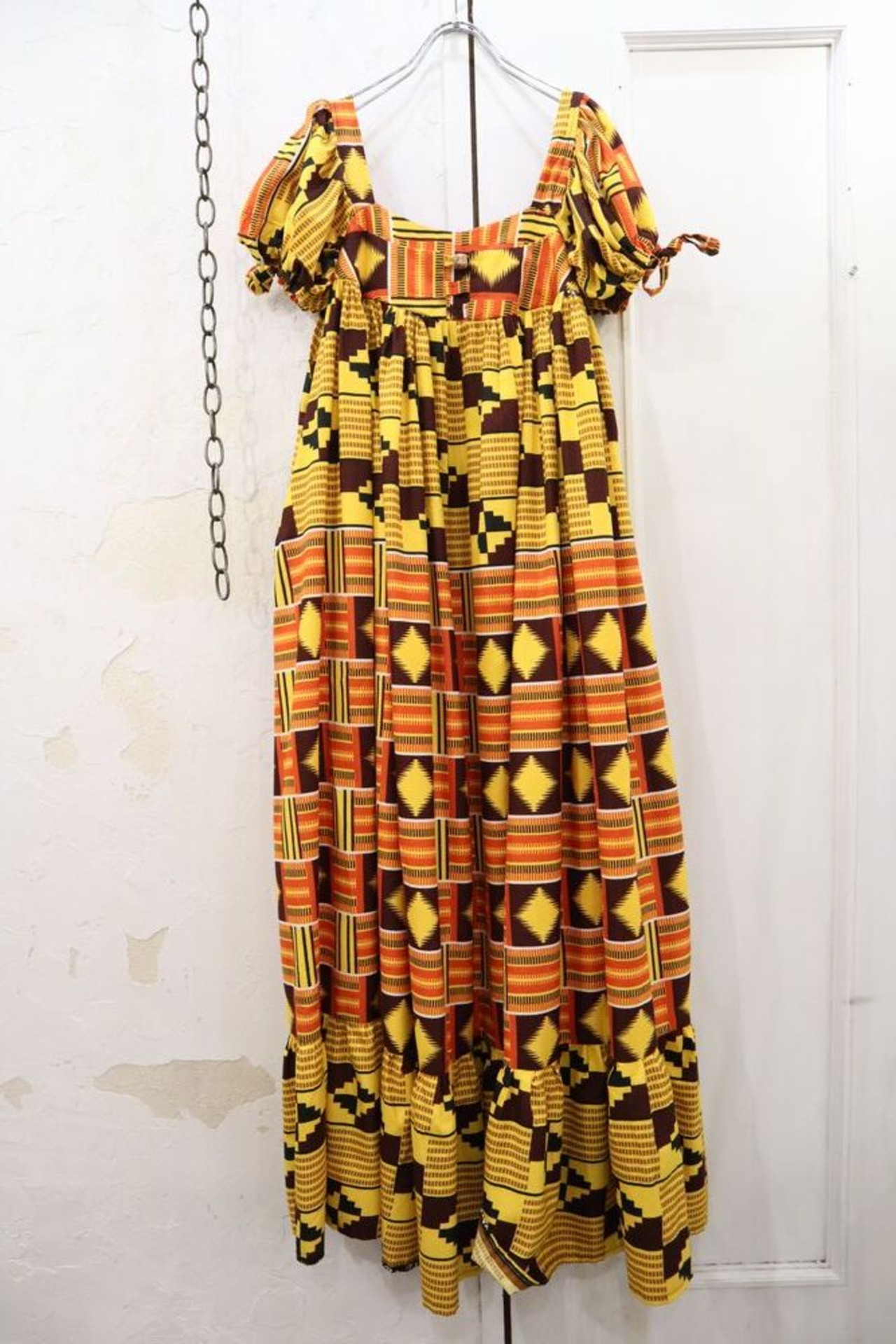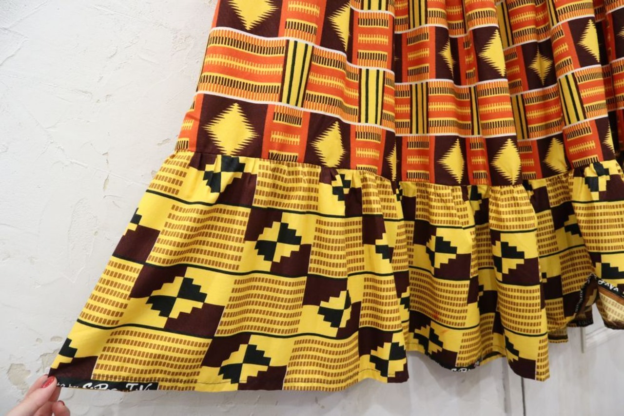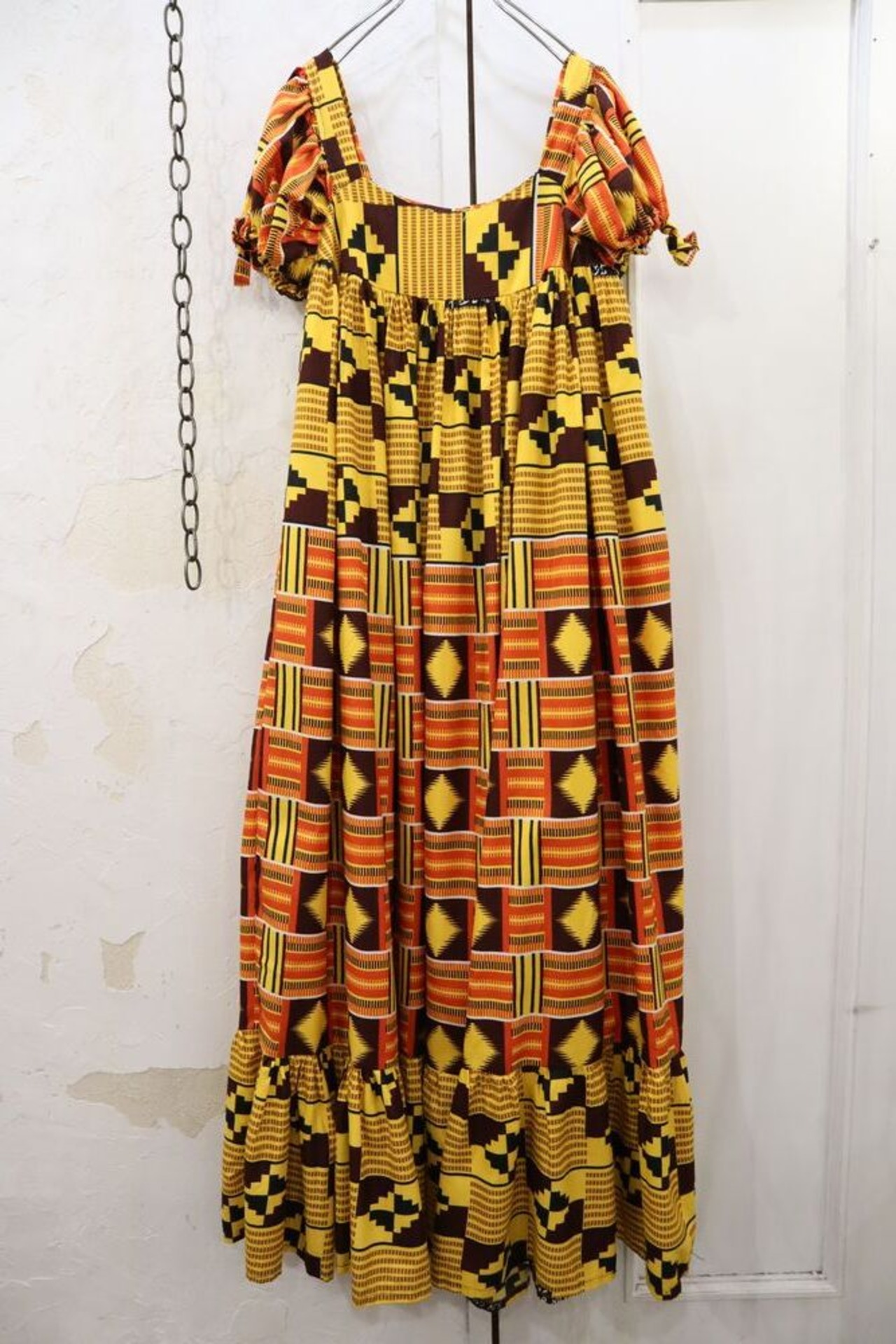 yellow × orange × brown african batik short sleeve dress [k-444]