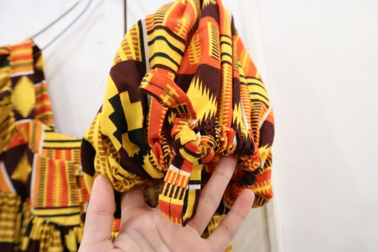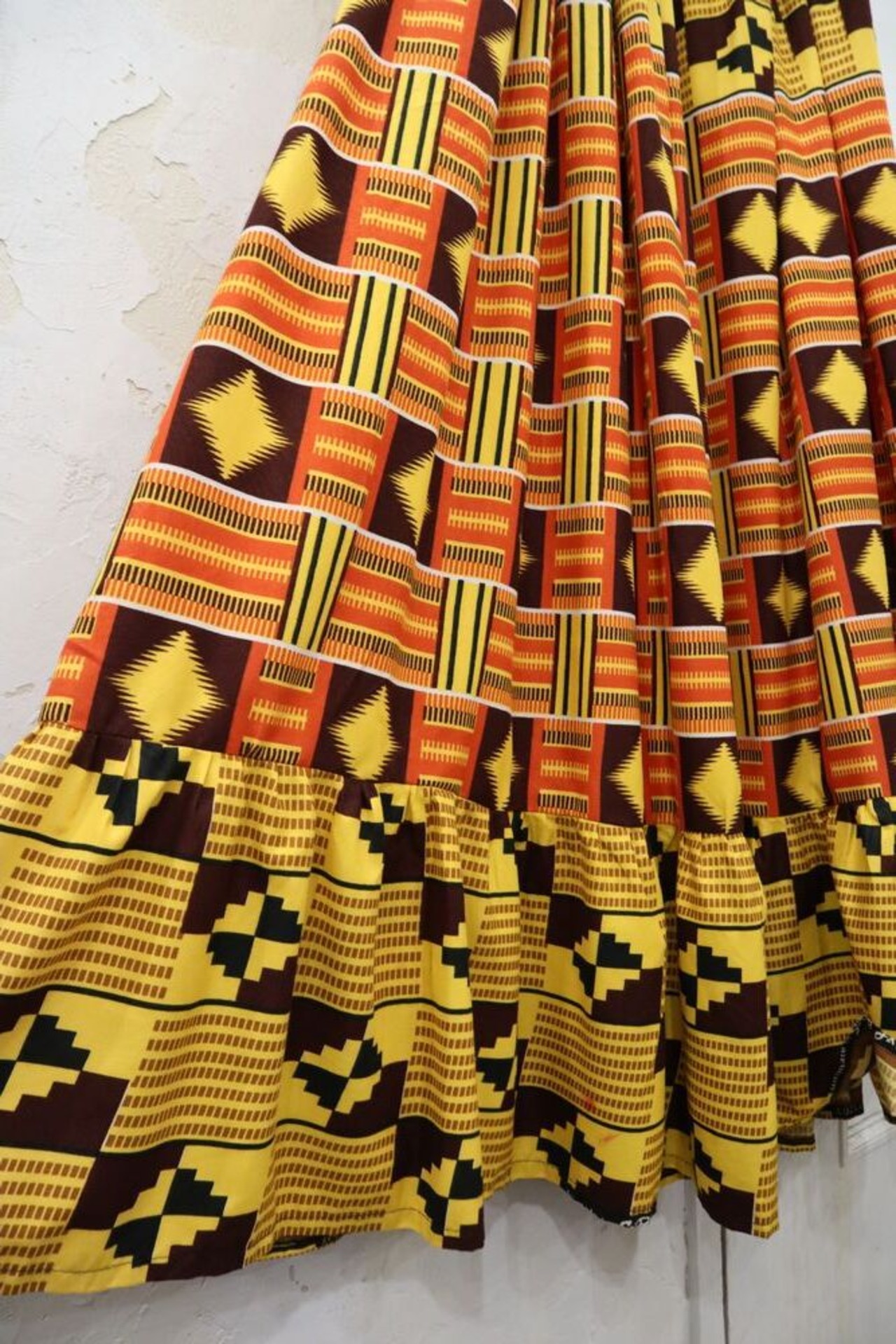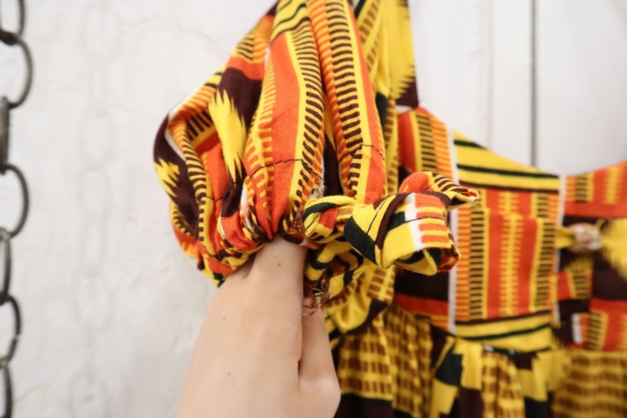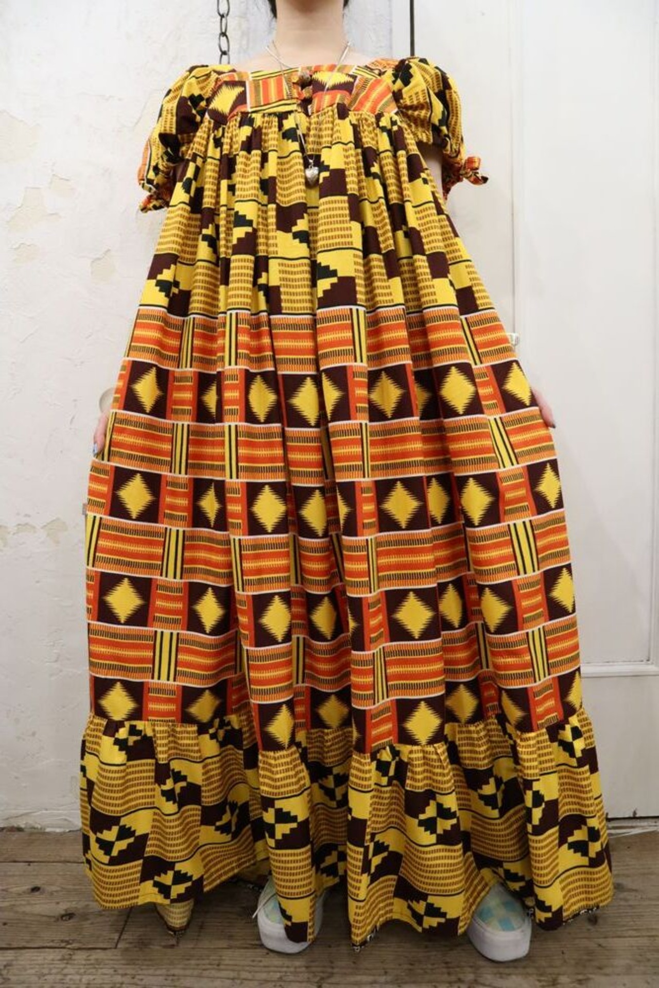yellow × orange × brown african batik short sleeve dress [k-444]