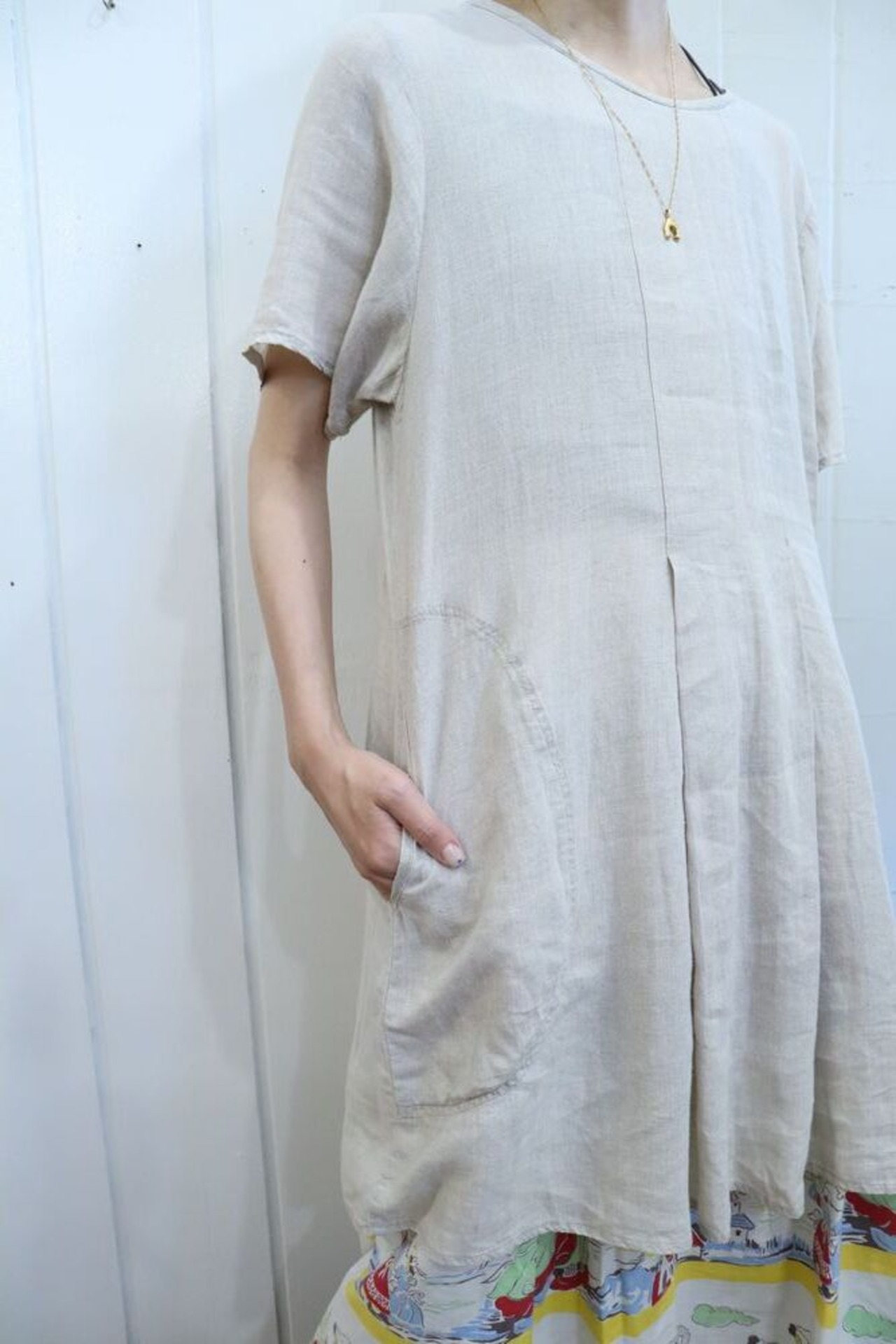 ”FLAX” beige plain short sleeve linen shirt [k-452]