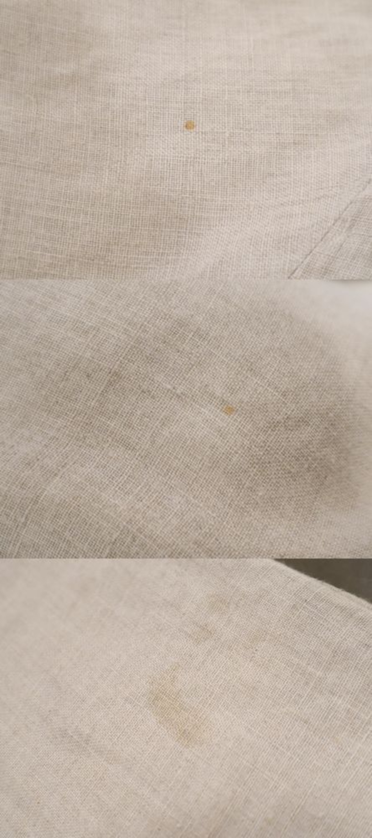 いくつか小さなシミ汚れや薄いシミ汚れがございますが、古着の味わいとして着て頂けるかと思われます。