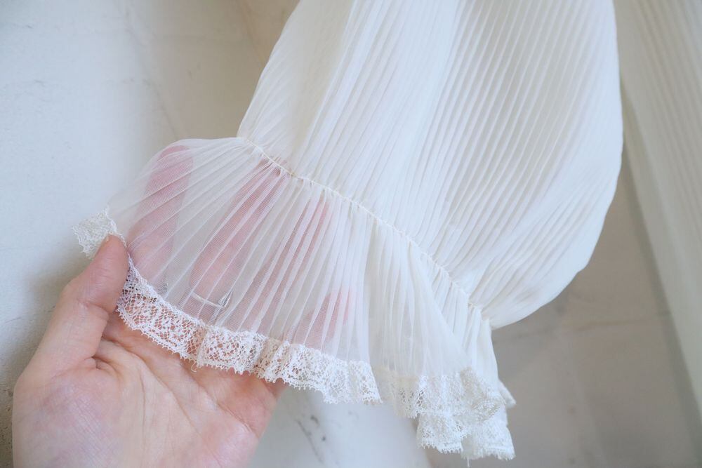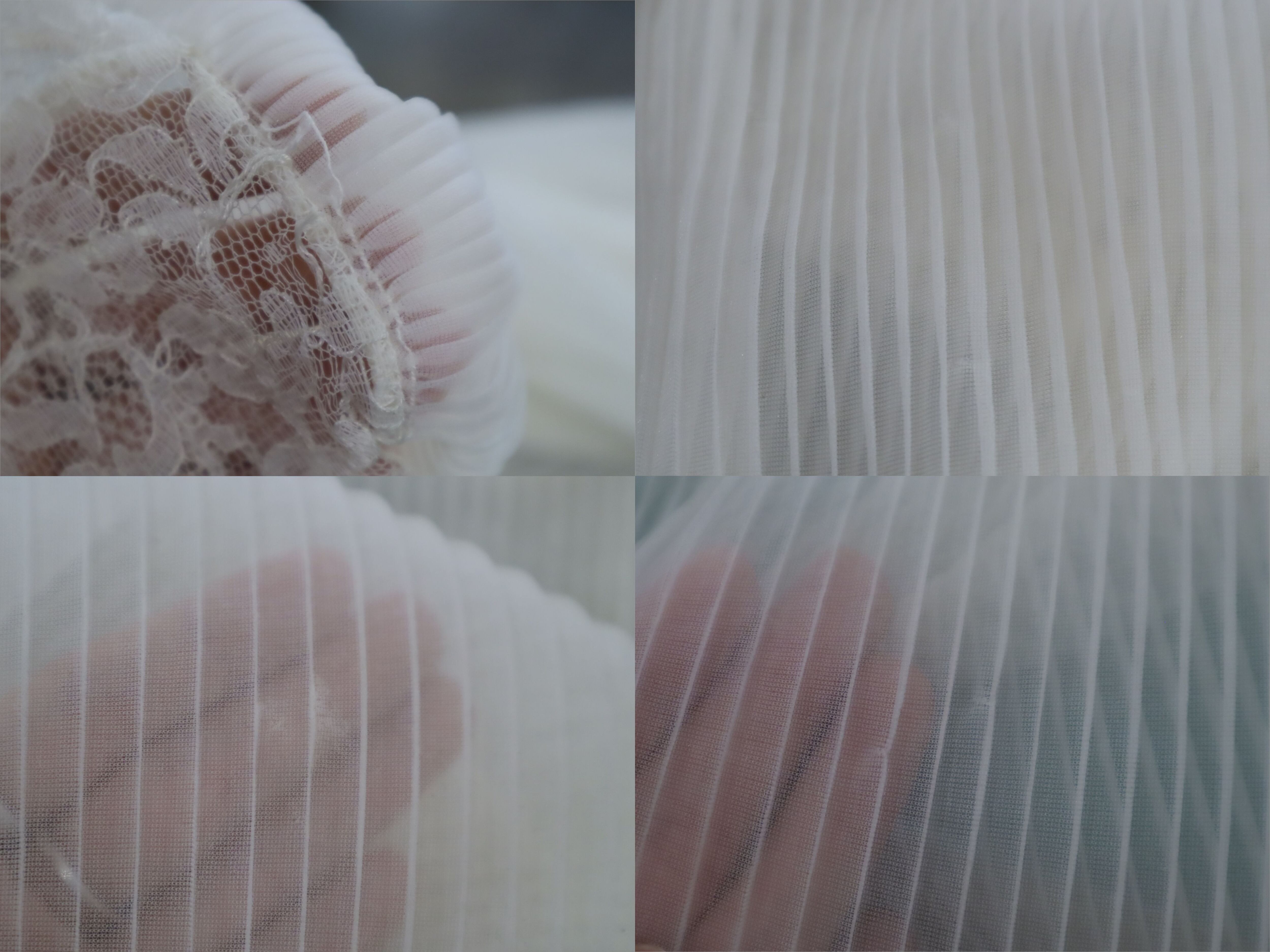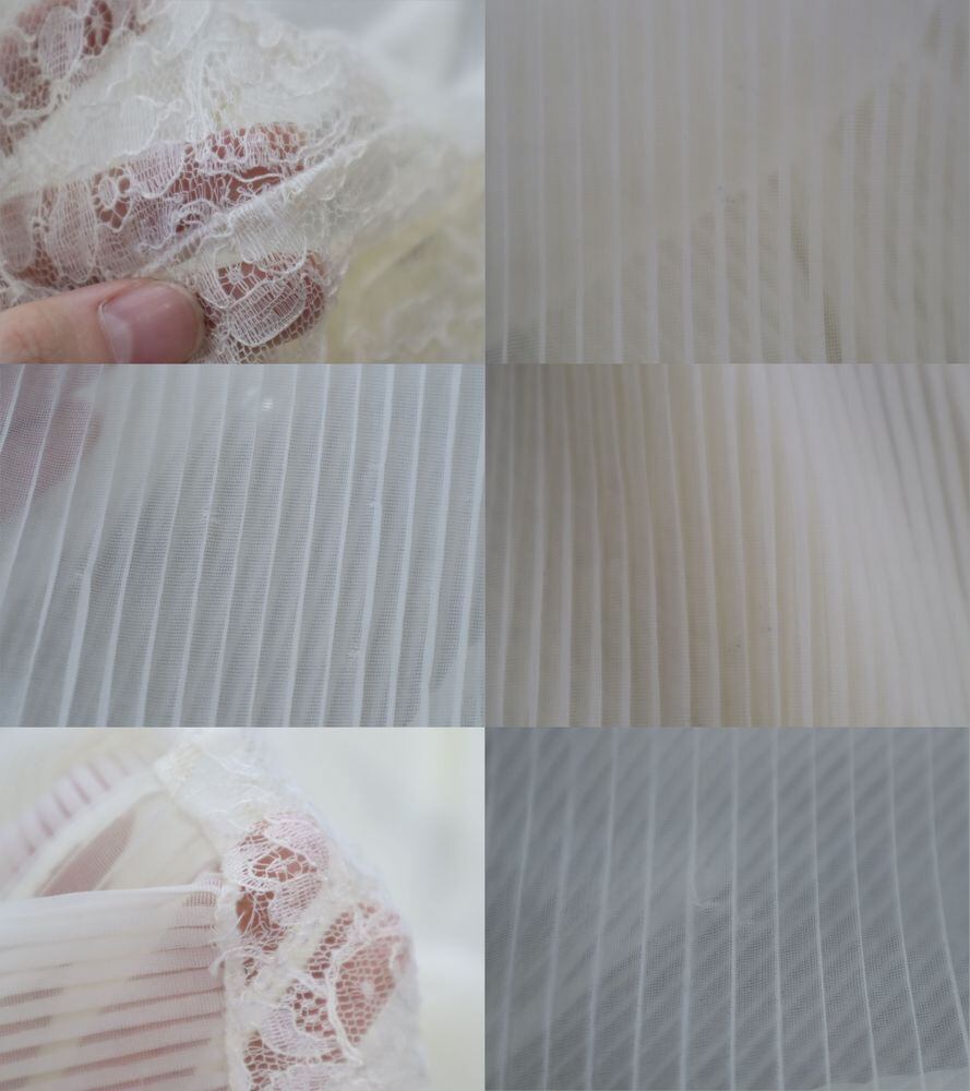 レース縫い目にいくつか小さな破れ、素材特有のキズがございますが、あまり気にならないかと思われます。
